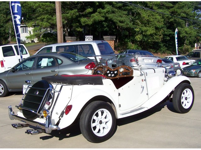 Just in this ultra nice MG TD Convertible Replica! This one neat machine parked in our showroom beauty! Miles are exempt for age but looks to only have 7500 miles since built! There are so many features and up-grades on this one! We will touch on a few there is too much to list! Please keep in mind when buying a kit car that not all are equal some are done way cheap and do not have all the goodies and many have less features so ck this one out fully! This one has rear mounted smooth strong 1600 cc dual port VW Beetle air cooled engine, rear wheel drive, nice dual exhaust, smooth 4 speed, wind wings, built on solid VW pan, trunk storage compartment, trunk rack, full gauge pkg inc tachometer, nice top, fog lights, side curtains, tonnu cab cover, nice set of Enki powdercoated white wheels, working heater, fog lamps, working lights, wipers, dash lights, signals, air horn, AAAUUGAAA horn, Sony am/fm/stereo cass, nice tidy interior and much much more! Looking great and every nut and bolt was touched when built on this is a very quality right equipment machine and is one of the best we have seen in a while! This unit was built in 94. Lazar straight body! This MG sits right and drives out strong! I am 6-4 225 lbs and i fit in this one and no it is not like a Town Car but very good for what it is! We have this one priced right for this quality and equipment! Truly a must see! We have this one parked in our showroom please call ahead to set up a time to check this one out!