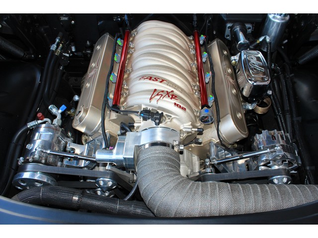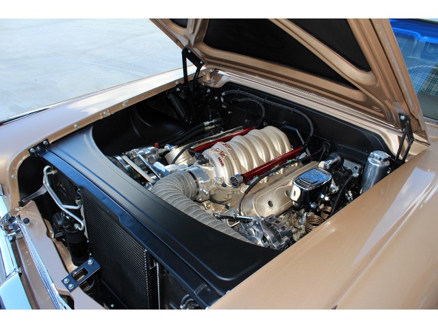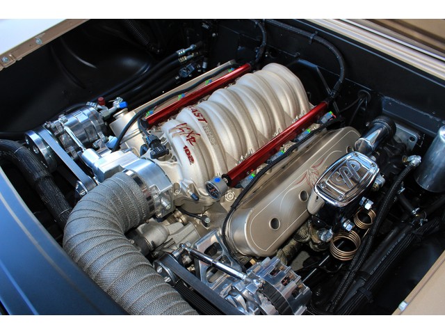 Finally, we will take a look at the heartbeat of the Chevy. Under the hood it’s powered by an LS V8 that’s had an upgrade with the LSXR-102 Intake, custom valve covers, and BBK headers. They installed Billet Pulleys and Brackets and a new Aluminum radiator was also added. It has the automatic over drive trans with the stock rear end. The brakes are from WilWood with 14” Drilled and Slotted Rotors. It has the CPP Hydra Stop System to assist the WilWood brakes. Also, it has 2” CPP drop spindeles along with AccuAir Air Ride System on all four corners. It comes with 3 presets for show and driving.