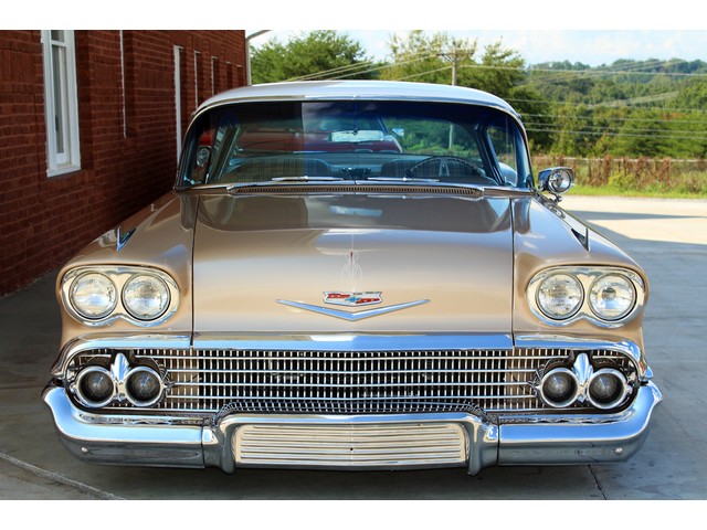 Up for sale we have a 1958 Chevy Impala. In ’58 Chevy added the impala line and made it top dog. It had a different top and had an extra tail light on each side in the rear. As far as I know they were all Hard Tops. The one we have for you is not your dads Impala, it’s had a lot of upgrades and a lot of money spent on it. In the paragraphs to follow we will give a brief description of the exterior, interior, and heartbeat of the Chevy, but first we would like to tell you a little about us.