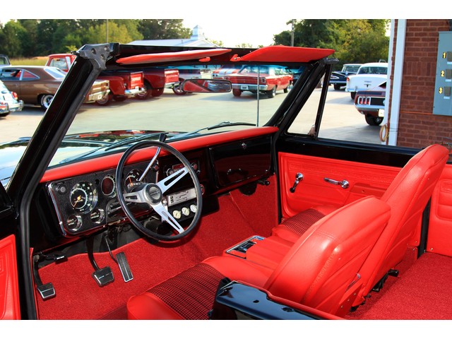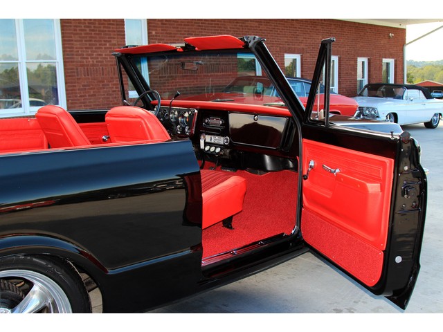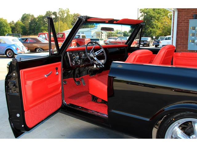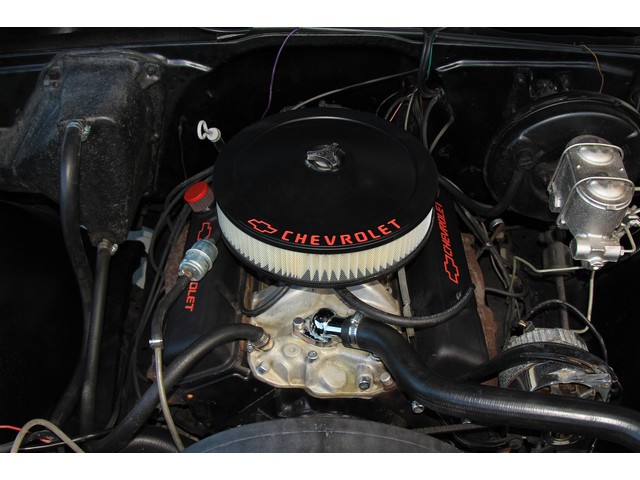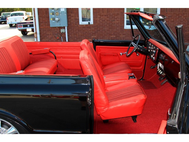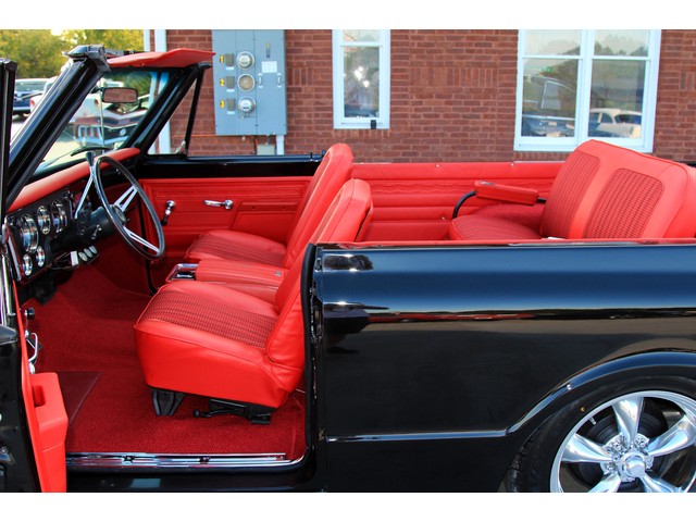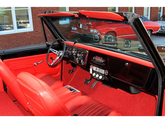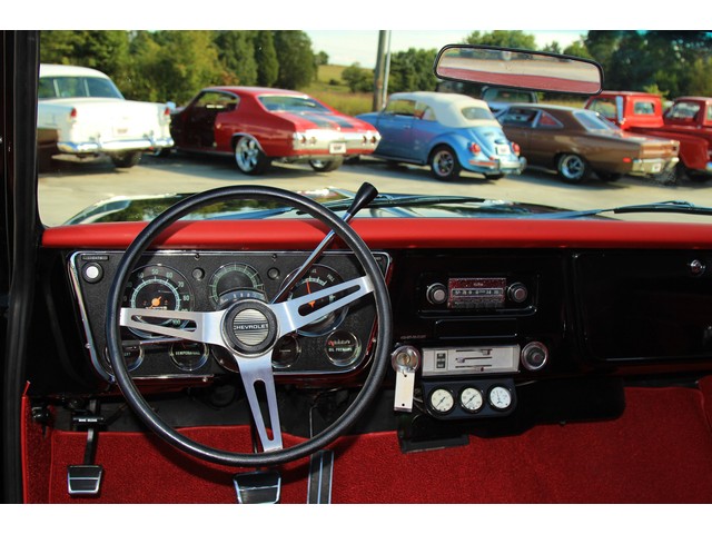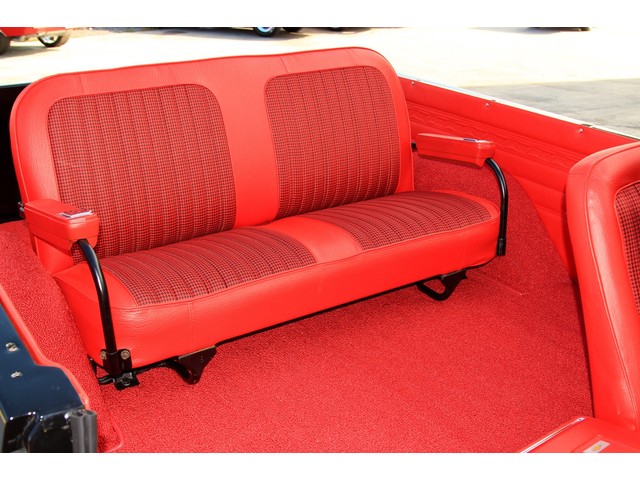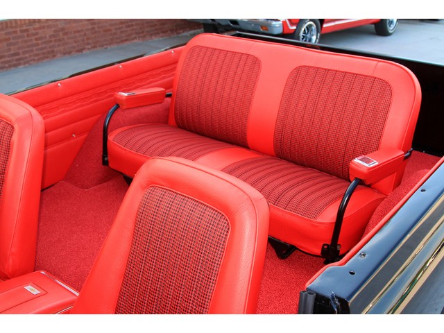 Next, we will take a look at the interior of the K5. Everything on the inside is all new. It’s done in red houndstooth with the bucket seats and mini console. This K5 has the rear jump seat that is also covered in the same colors. They used red carpet along with red door panels and re rear side panels. The dash is black with a red pad. It has tilt column with a custom wheel. They added a set of aftermarket under dash gauges. All the interior of this K5 looks great, as it should.