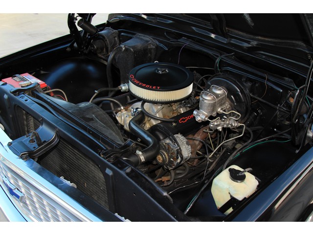 Finally we will take a look at the heartbeat of the Chevy. Under the hood it’s powered by a small block 350 with a 700R Trans. The engine is dressed with Black Bow Tie valve covers and breather. It has an aluminum intake with chrome alternator and pulleys. Also it has dual exhaust for the sound we all like. The Power Steering and Power Disc Brakes is a must for a unit that you would want to drive as much as you are going to want to drive this K5. The bottom of this K5 looks solid with good pans and frame.