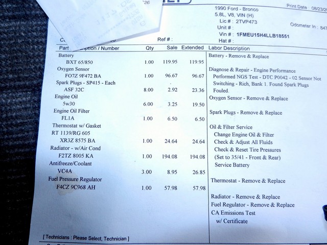 Please e-mail us via e-Bay for additional questions. For your protection and ours, all communication must be made via e-Bay only. We will answer all of your questions as quickly as possible. Thank you.  AutoCheck Vehicle History ReportReport Run Date: September 13, 2014 8:54:05 PM EDT 1990 Ford Bronco Custom / Eddie Bauer / XLT  Calculated Owners: 2 - Class: SUV - Large
