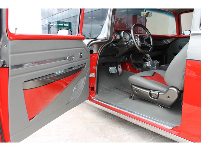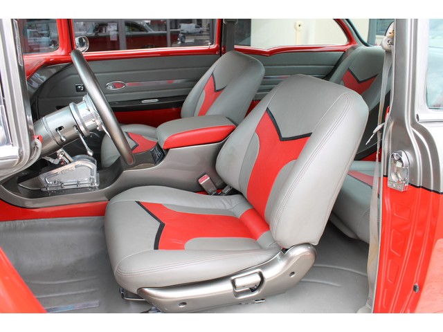 1957 Chevrolet Bel Air resto mod, 400 small block chevrolet engine backed by a 700R4 transmission, 10 bolt rear end with 3.07 gears, 605 power steering, 4-wheel disc brakes, air conditioning, tilt wheel, power windows, and custom leather upholstery - all together make this a very cool and comfortable cruiser!