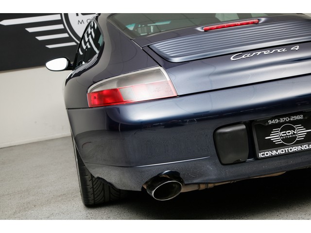 YOU ARE LOOKING AT BLUE 1999 PORSCHE 911 CARRERA 4 2 DOOR COUPE B6, 3.4L (3387 CC); DOHC 24V AWD WITH 135601 MILES. WHAT A PIECE OF ART! THIS 911 IS JUST PRISTINE WITH NO PREVIOUS DAMAGE, NO DENTS, NO MAJOR SCRATCHES, NO RIPS, NO TEARS, NO SMELLS AND A CLEAN CARFAX. THIS CAR HAS BEEN VERY WELL MAINTAINED AND PERFORMS LIKE NEW IN ALL ASPECS. SOME FEATURES INCLUDE BUT ARE NOT LIMITED TO:TIPTRONIC * MOON ROOF * FULL LEATHER *AFTERMARKET PIONEER TOUCHSCREEN AUDIO * PSM * SPORT WHEELS * UPGRADED HEADLIGHTS/SIDE MARKERS * UPGRADED FACTORY SPORT EXHAUST * VERY WELL MAINTAINED BY TRUSPEED IN COSTA MESA. Icon Motoring has a passion for cars. We create the experiences that car enthusiasts can appreciate. Specializing in high end european sedans, sports cars, luxury off-road vehicles, suv's and specialty vehicles. We offer aftermarket products and accessories along with any customizing needs you may have.Financing available.Please call ICON MOTORING for more information at (949) 365-1765.