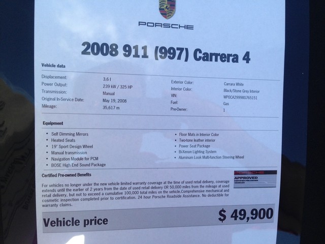 CERTIFIED PORSCHE WARRANTY GOOD FOR TWO YEARS OR UP TO 100,000 MILES ON THE ODOMETER WHICHEVER COMES FIRST