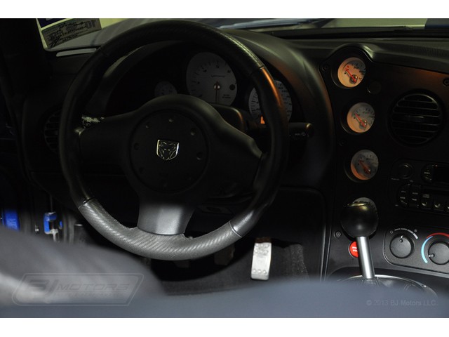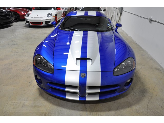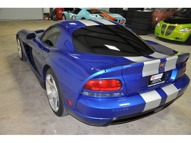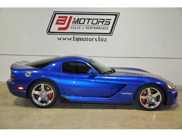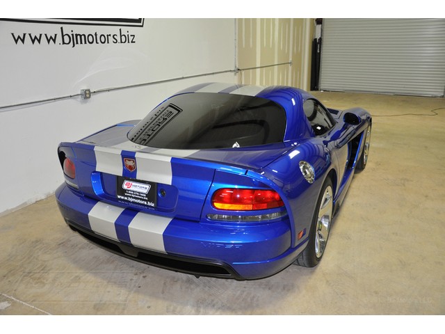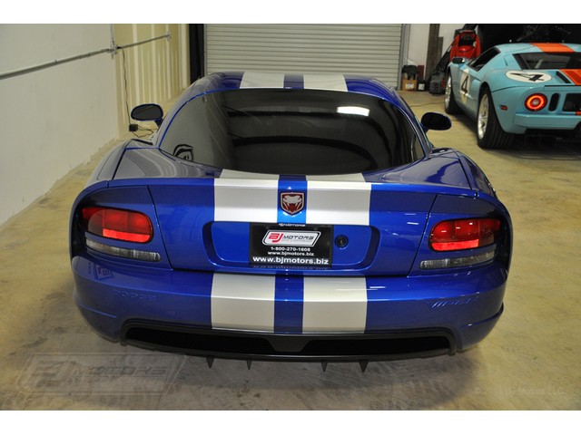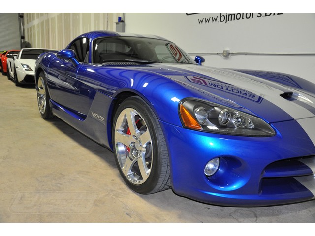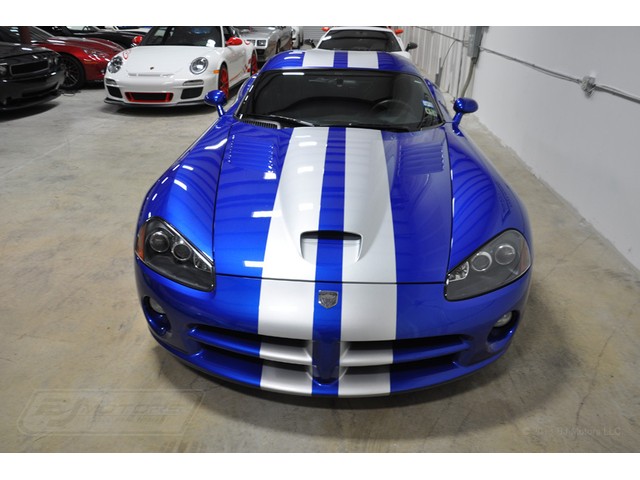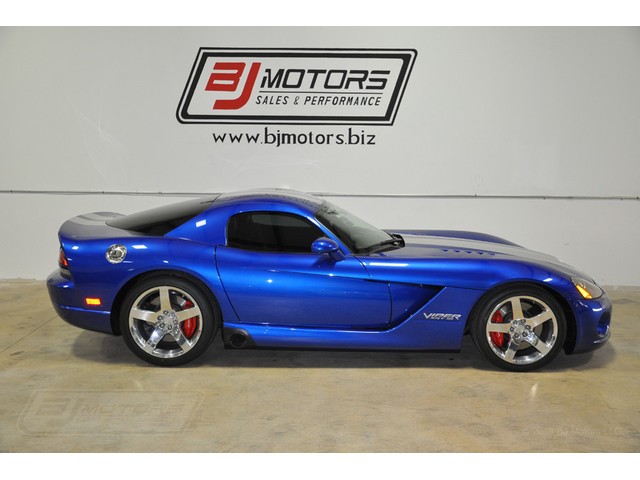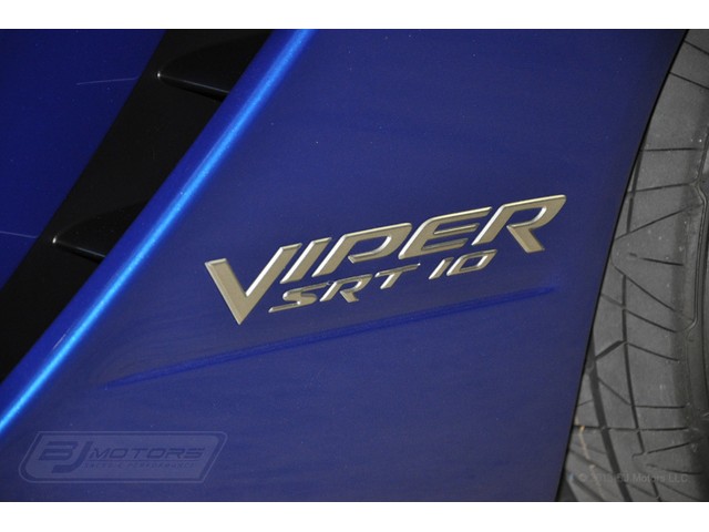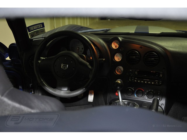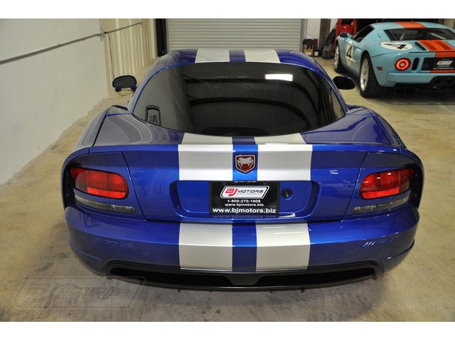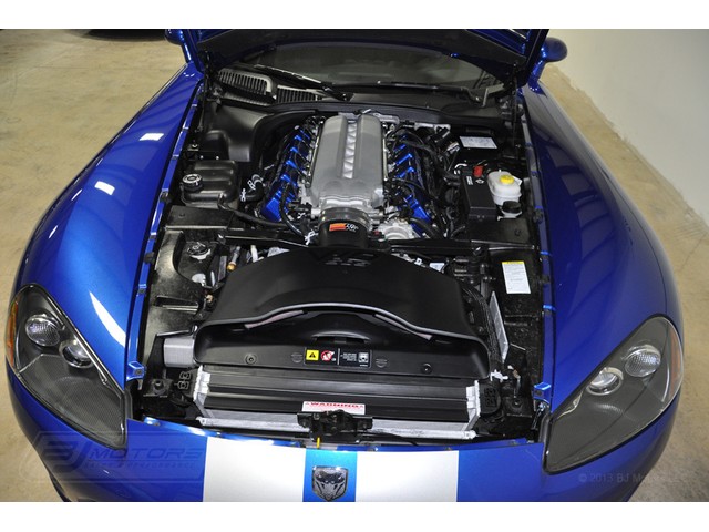 GTS Blue with Silver Stripes – What a beauty and a great color and in excellent condition, this Monster 505 cu in 8.3 L Engine , 6 Speed Manual Transmission ,3.07 Gear Rear End , Engine oil and filter changed regularly with Mobil 1 synthetic ,K&N Oil Filters, K&N Cold Air Intake system, Custom Dyno Tuned - 500 RWHP, 540 RW Trq Long Tube Headers Magna-flow Exhaust 3/4" lowering springs front and rear, Valve covers painted blue and silver to color match car 4 New Nitto Invo Tires with less than 200 miles, Climate controlled garage kept with custom fitted car cover and battery tender Extra set of Viper floor mats, The last owner has kept this car was on a regular maintenance schedule. The mileage is low and this car has been kept mechanically sound with regard to fluid circulation in engine, tranny and rear end. The Viper was never driven in inclement weather. For more information call me on our 800 toll free number 1-800-270-1608 or by e-mail at bfkatz@bjmotors.biz.