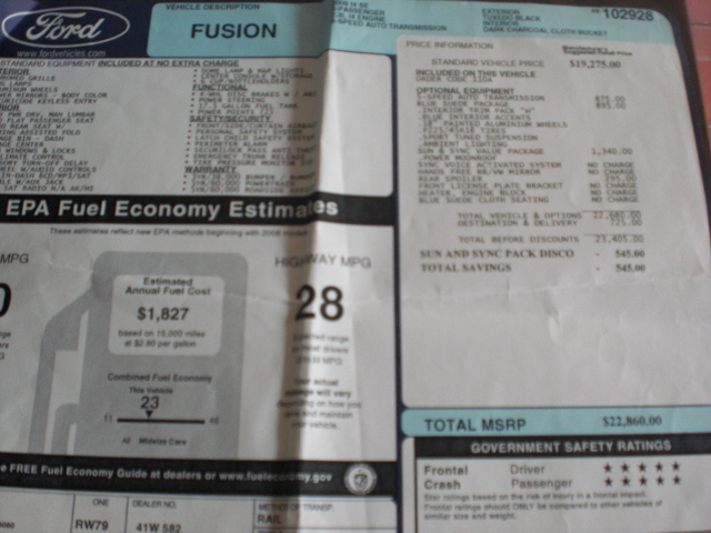 To start with powers come from a gas sipping 2.3 liter  torque-happy, 160-hp Duratec 4-cylinder that achieves up to 29 mpg highway and travels 467 miles on a full tank of gas. Team that engine with the  5-speed automatic and you get this earth-friendly bonus.