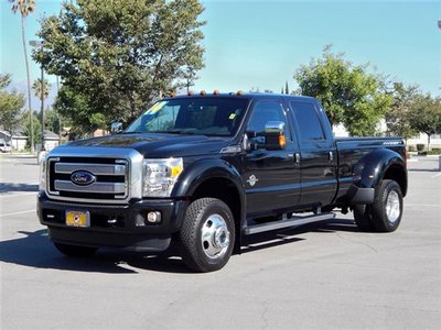 This 2014 Ford Super Duty F-450 DRW 4dr 4WD Crew Cab 172 Platinum 4x4 Truck features a 6.7L 8 CYLINDER TURBOCHARGED 8cyl Diesel engine. It is equipped with a 6 Speed Automatic transmission. The vehicle is Kodiak Brown Metallic with a Adobe Full Leather interior. It is covered by a limited warranty. - This Here Is A Beautifully Engineered 2014 Ford F450 Super Crew DRW Pickup Truck With Only 974 Miles On Its Class Leading 400 Horsepower 6.7 Liter Turbo Charged Diesel Engine And Six Speed Automatic Transmission Producing 800 Ft Lbs Of Torque This Class Leading Super Duty Pickup Is an Unblemished Tuxedo Black Metallic Worthy Of Any Showroom Floor With A Clear Single Owner Carfax Record. This Ford F450 Dually Delivers Luxurious Comfort\, And An Impressively Smooth Ride. The Elegant and Leisure Cabin Features Full Leather Interior\, Authentic Wood Trims\, Power Seats\, Power Locks\, Power Windows\, Sunroof\, Vehicle Information Center\, Multi-functional Speedometer with App Controls\, Factory Navigation System\, 4 Auxiliary Controls\, Climate Controls\, Microsoft Sync\, Sony Sound System\, Reverse Camera\, Telscoping Steering Wheel\, Keyless Entry\, Tow Haul with Manual Control\, Satellite Radio & Much More!! Easy Financing Is Available Regardless Of Any Credit Situation. Our industry leading standards and countless years of combined experience make us the obvious choice for premium pre owned vehicles. We have extensive relations with all lenders for all levels of credits. Please don't hesitate to contact us with any questions you may have. - Climate Control\, Dual Zone Climate Control\, Cruise Control\, Tinted Windows\, Power Steering\, Power Mirrors\, Leather Steering Wheel\, Memory Seat Position\, Clock\, Tachometer\, Telescoping Steering Wheel\, Steering Wheel Radio Controls\, Driver Airbag\, Passenger Airbag\, Side Airbags\, Keyless Entry\, Security System\, ABS Brakes\, Traction Control\, Dynamic Stability\, Rear Defogger\, Fog Lights\, Intermittent Wipers\, AM/FM\, Anti-Theft\, Full Leather Interior Surface\, Four Wheel Drive\,\, Heated Mirrors\, Power Adjustable Pedals\, Side Curtain Airbags\, Reverse Camera\, Parking Sensors\, Bedliner\, Tow Hooks\, Center Arm Rest\, Vanity Mirrors\, Running Boards\, Sliding Rear Window\, SYNC-AŤ Voice Activated\, Overhead Console\, Navigation System\, Split Front Bench\, Bluetooth\, Carpeted Floor Mats - Contact Harbor City: 310-830-0033 / Lomita: 310-784-0600 / Fontana: 909-452-8262 at See-Locations or admin@jimsautosalesla.com for more information. -