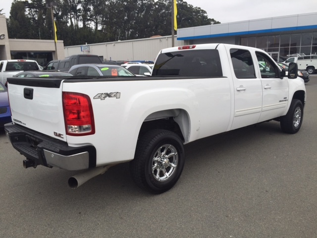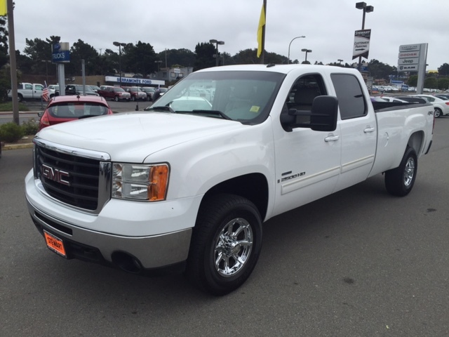 ENGINE, DURAMAX 6.6L TURBO DIESEL V8 Bio-Diesel compatible (365 hp [271.7 kW] @ 3200 rpm, 660 lb-ft of torque [894.6 N-m] @ 1600 rpm) Includes (TUV) heavy-duty dual, 730 cold-cranking-amp battery and (K05) engine block heater), AUDIO SYSTEM WITH NAVIGATION, AM/FM STEREO WITH MP3 COMPATIBLE CD PLAYER AND MULTIMEDIA NAVIGATION with voice prompts, seek-and-scan, digital clock, auto-tone control, Radio Data System (RDS), speed-compensated volume and TheftLock (Includes (UQA) Bose premium speaker system. Also includes (UK6) rear audio system controls on Crew Cab models. TRANSMISSION, ALLISON 1000 6-SPEED AUTOMATIC, ELECTRONICALLY CONTROLLED with overdrive, electronic engine grade braking and tow/haul mode, SUNROOF, POWER with express-open, includes (UG1) Universal Home Remote, CONVENIENCE PACKAGE includes (JF4) adjustable power pedals, (AP3) remote vehicle starter system and (UD7) Rear Parking Assist, DIFFERENTIAL, HEAVY-DUTY AUTOMATIC LOCKING REAR, TRAILERING EQUIPMENT, HEAVY-DUTY includes trailering hitch platform and 2.5-inch receiver with 2" adapter, 7-wire harness (harness includes wires for: park lamps, backup lamps, right turn, left turn, electric brake lead, battery and ground) with independent fused trailering circuits mated to a 7-way sealed connector