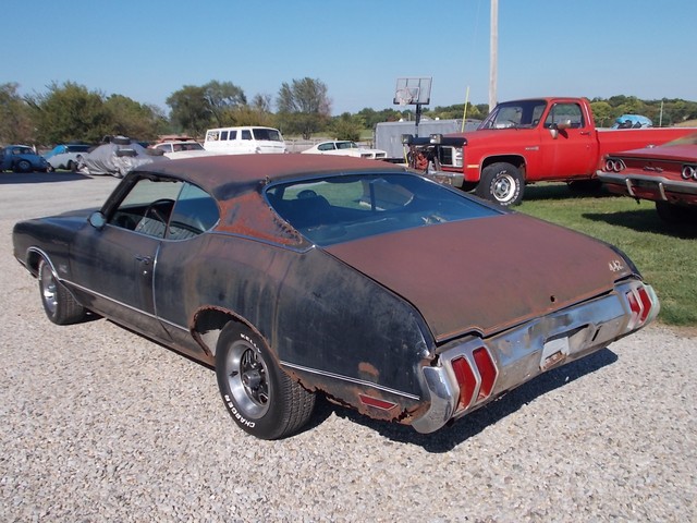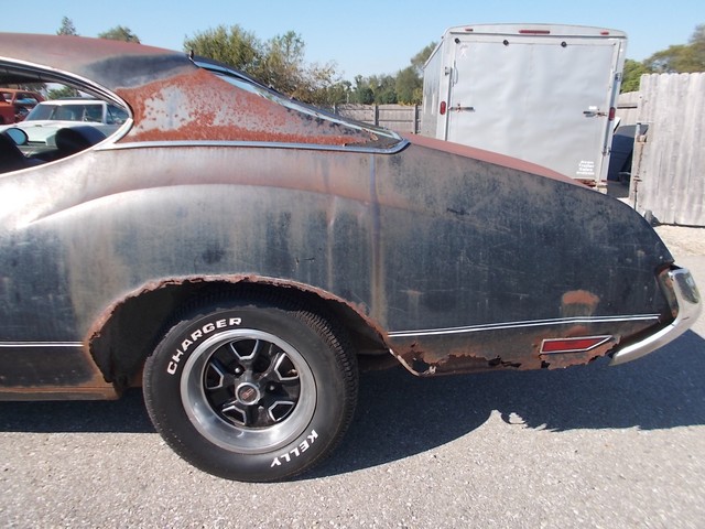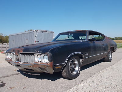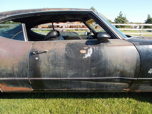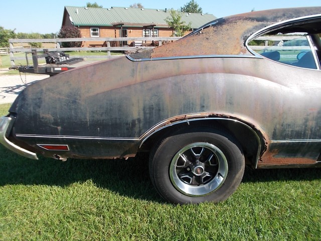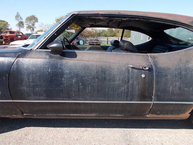 # MATCHING 455, 4BBL Q-JET WITH AUTOMATIC THAT MAKES 500 FT LBS OF TORQUE FROM FACTORY. ALSO CAME WITH POWER STEER, POW DISC BRAKES, 12 BOLT POSI, REARSWAY BAR, IN VERY DESIRABLE BLACK PAINT THATS NEVER BEEN REPAINTED. RUNS GREAT AND DRIVES GOOD. THE GAS TANK HAS A HOLE SO IT RUNS ON A GALLON GAS CAN. NICE DASH PAD AND SEATS. DOOR PANELS NOT BAD FOR DRIVER. NEEDS LITTLE RUST REPAIR ON REAR. SOLID FRAME. BRAKES WORK, JUST HAVE A LITTLE AIR IN THEM. CLEAR INDIANA TITLE WITH NO MILES ON IT.
