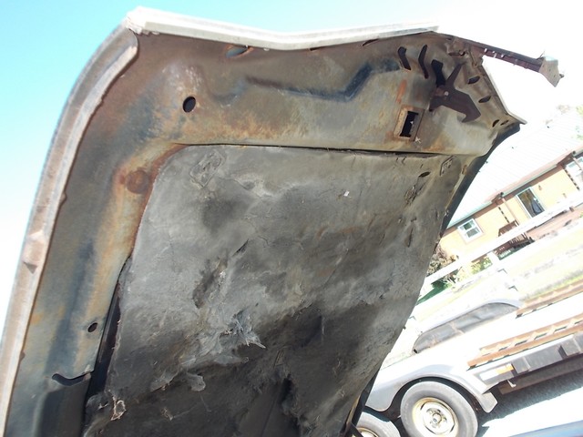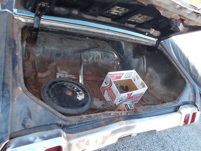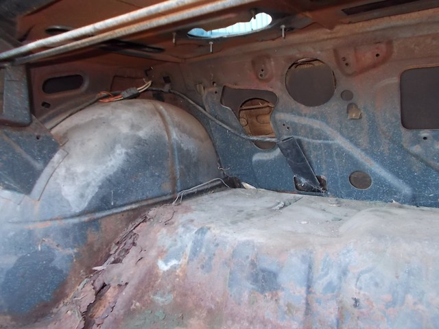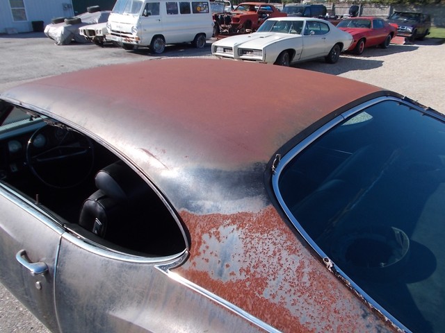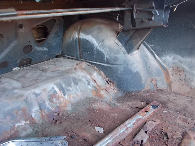 GOOD FRAME, HOOD, DOORS, FENDERS JUST NEED LITTLE PATCH, TOP LOOKS RUFF BUT NO HOLES OR SOFT PLACES. WILL FOR SURE NEED TRUNK LID, QUARTER SKINS, OUTER WHEEL WELLS FOR REAR. TRUNK PAN AND PATCH 3 SPOTS IN FLOOR. ALSO NEED WINSHIELD AND GAS TANK.