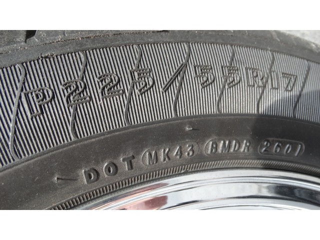 WHAT ARE THE WHEELS AND TIRES? The wheels look like new, they are American Racing Chrome Torque Trust 17 inch, the tires are good, the fronts 215/50/17 and the back 225/55/17.