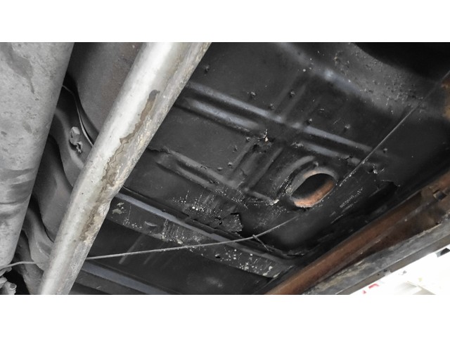 HAS THE CAR GOT ANY RUST? I see no rust on the outside body and no rust bubbles. The floors look original to me, the back rear passengers floor bottom had some rust and a plate has been installed from the inside. The frame looks real solid as well as the other mounts and underside metal. I would replace the floor patch with a peice of a factory panel if I was going to keep the car for ever, its just a cosmetic thing.