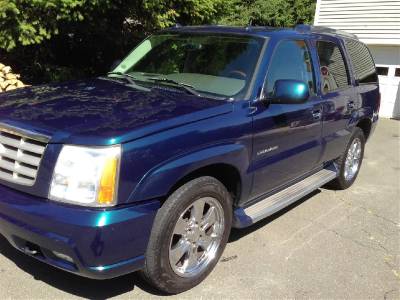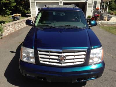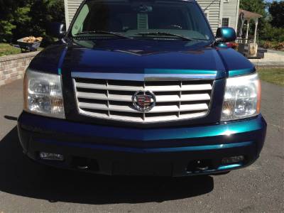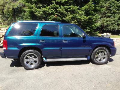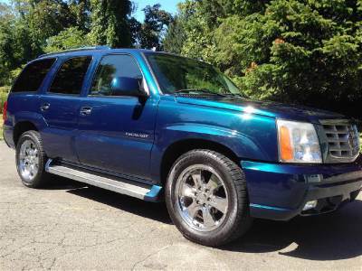 For sale is my personal AWD(All Wheel Drive) 2005 Cadillac Escalade. This is a very rare color called Riptide Blue which was made in 2005 and 2006, and this one happens to be fully loaded. This came with the factory Navigation screen which was an option back in 2005. I have upgraded the factory Navigation system to bring this in to 2014….It now has Bluetooth, Better Navigation, DVD player, Ipod connection for ALL iphones and ipods, etc. It has the adapter to fit the iphone 5-6 phones. The Wheels are also a very rare Cadillac option. 20 Inch Chrome, which were very expensive which is why they are so rare, extra bonus! They are beautiful and not some aftermarket wheel that messes up the ride of this amazing SUV.