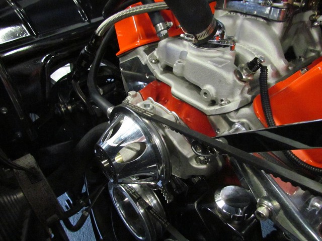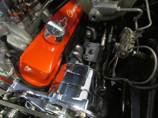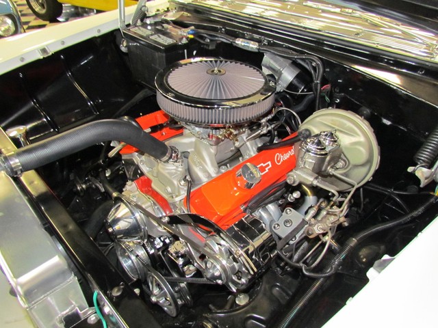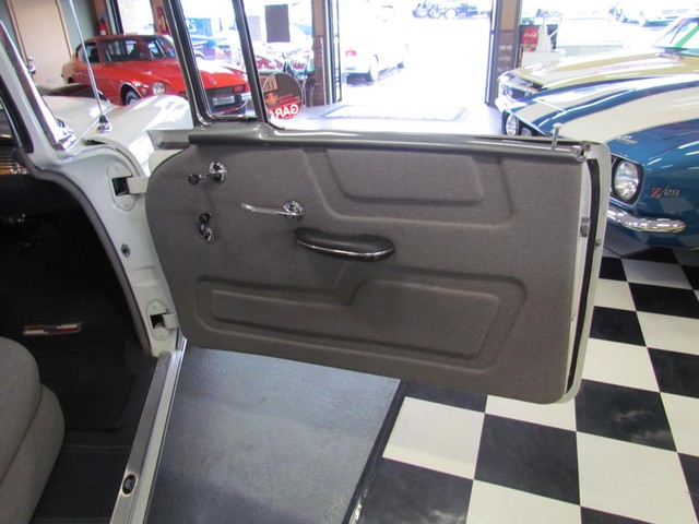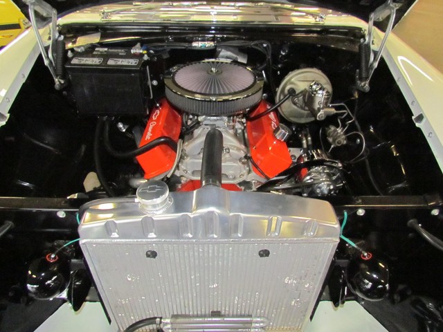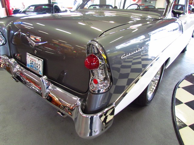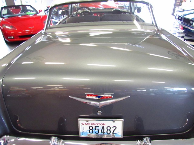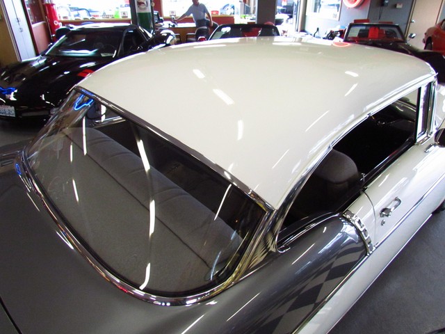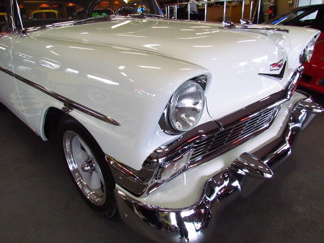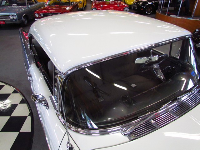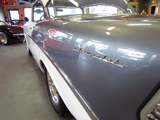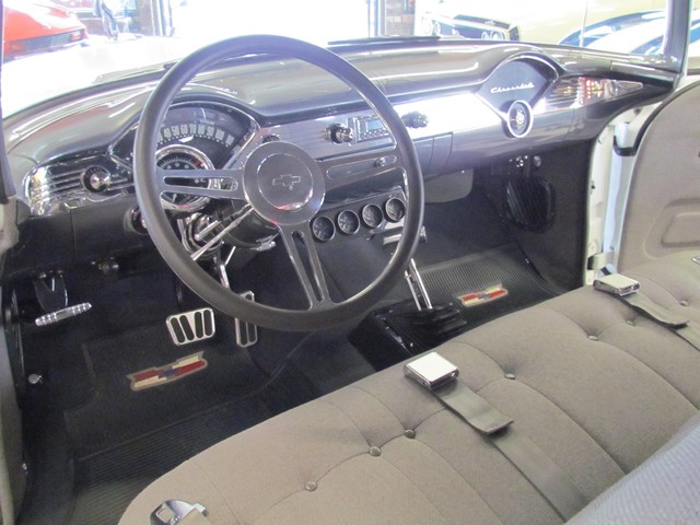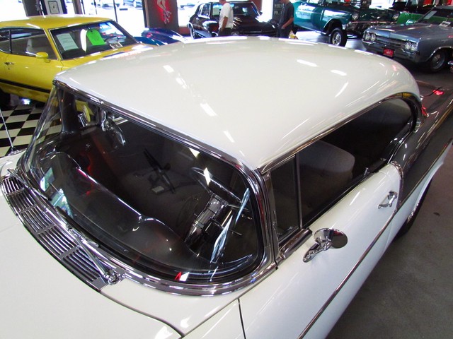 Here's a beautiful restored 1956 Chevrolet 2 door hardtop. 350ci Brodix aluminum heads, Comp Cams cam and valvetrain, Edelbrock Air Gap intake, Holley Avenger carb, Doug's ceramic coated headers, Custom 3" stainless exhaust, Pypes mufflers, High volume aluminum water pump, Electric fan, Aluminum radiator, High torque starter, MSD ignition. Turbo 400 automatic transmission, Lokar electric kickdown. 9" Ford rear end with 3.00 positraction, Willwood 4 wheel power disc brakes, Front and rear sway bar upgrade, CCP 500 series power steering box. New upper and lower control arm bushings, Body mounts, shocks, Fuel tank. 17" American Racing Wheels 215/65 front, 255/60 rear tires. Grey cloth custom interior, Ididit Chrome tilt column with Billet Specialties Split spoke 1/2 wrap wheel, Retro Sound stereo with ipod jack, Amp, Subwoofer and rear deck speakers hidden in trunk compartment. Dynamat soundproofing on floorboards. Clean underbody - Check out the close up pictures. Big stack of receipts to document, Fresh restoration ready for you to show or cruise!