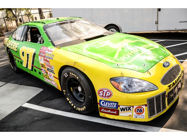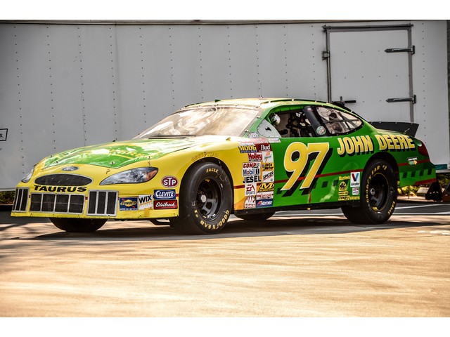 This is Kurt Busch's rookie year car where he made his debut into NASCAR in the Winston Cup Series replacing Chad Little mid season. The iconic John Deere livery on this Ford Taurus has a Roush Kraft chassis cradling a Roush/Ford all aluminum 430 cid 850 hp 830 ft-lbs carbureted dry sump V8 with newer SC1 Roush heads.