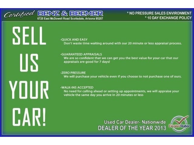 Clean CarFax 1-Owner! Certified Benz & Beemer will strive to provide you, our valued customer, with the following: The highest quality preowned vehicles that represent the best value anywhere. A friendly and comfortable shopping experience with zero pressure. A totally transparent process providing you with our best upfront pricing, a CarFax history report, our service inspection report, a Kelly Blue Book report, and a market analysis report. A 3 month/3000 mile warranty on certified vehicles and a 10 day trial exchange policy for your peace of mind. We promise the best possible buying experience you have ever had. We are proud to have been presented the Used Car Dealer of the Year for Arizona in 2012 and the Used Car Dealer of the Year for the Nation in 2013, awarded by DealerRater.com for superior customer satisfaction. DealerRater is the most trusted source of automobile dealership and service center reviews. Car dealers are rated on the criteria of customer service, quality of work, friendliness, price and overall experience.