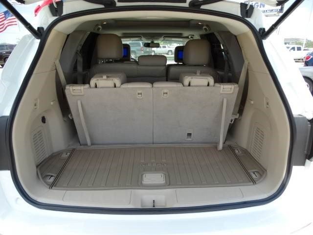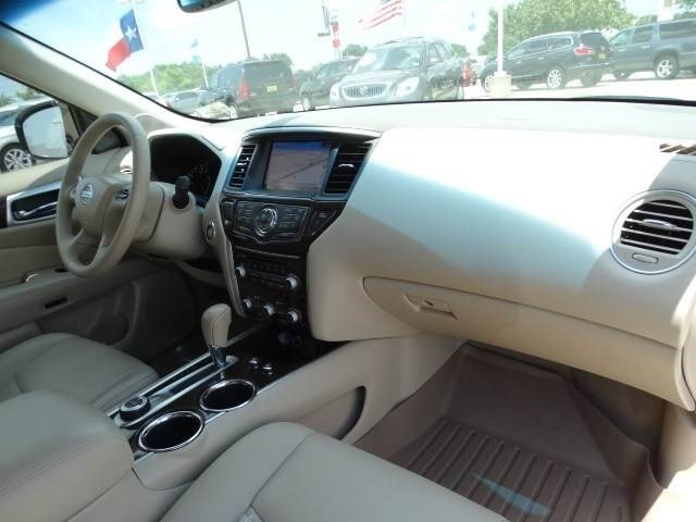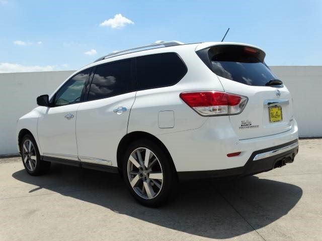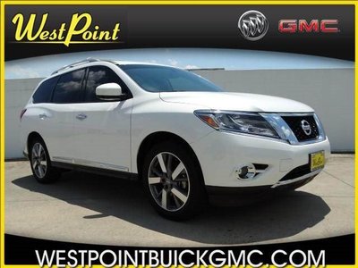 Cargo Package, Platinum Premium Package (Dual Panorama Moonroof), 4WD, Illuminated Kick Plates, MOONROOF/ SUNROOF, and NAVIGATION/GPS, THIS BEAUTY HAS IT ALLThank you for taking the time to look at this gorgeous 2014 Nissan Pathfinder. When you say quality, Nissan comes immediately to mind, and this Nissan Pathfinder is no exception. This SUV is nicely equipped with features such as Cargo Package, Platinum Premium Package (Dual Panorama Moonroof), 4WD, Illuminated Kick Plates, MOONROOF/ SUNROOF, NAVIGATION/GPS, 13 Speakers, 3rd row seats: bench, 4-Wheel Disc Brakes, ABS brakes, Air Conditioning, Alloy wheels, Auto tilt-away steering wheel, Auto-dimming Rear-View mirror, Automatic temperature control, BLUE TOOTH FOR PHONE, Bodyside moldings, Brake assist, Bumpers: body-color, CD player, Clean Carfax, Driver door bin, Driver vanity mirror, Dual front impact airbags, Dual front side impact airbags, DVD-Audio, Electronic Stability Control, Four wheel independent suspension, Front anti-roll bar, Front Bucket Seats, Front Center Armrest w/Storage, Front dual zone A/C, Front fog lights, Front reading lights, Fully automatic headlights, Garage door transmitter: HomeLink, Heated & Cooled Climate Controlled Seats, Heated door mirrors, Heated front seats, Heated rear seats, Heated steering wheel, Illuminated entry, Leather Seating Surfaces, Leather Shift Knob, Leather steering wheel, Local Trade, Low tire pressure warning, Memory seat, MP3 decoder, Navigation System, Occupant sensing airbag, Outside temperature display, Overhead airbag, Overhead console, Panic alarm, Passenger door bin, Passenger vanity mirror, Power door mirrors, Power driver seat, Power passenger seat, Power steering, Power windows, Radio data system, Rear air conditioning, Rear anti-roll bar, Rear Bumper Protector, Rear reading lights, Rear seat center armrest, Rear window defroster, Rear window wiper, Reclining 3rd row seat, Remote keyless entry, Roof rack: rails only, Security system, Speed control, Speed-sensing steering, Speed-Sensitive Wipers, Split folding rear seat, Spoiler, Steering wheel memory, Steering wheel mounted audio controls, Tachometer, Telescoping steering wheel, Tilt steering wheel, Traction control, Trip computer, Variably intermittent wipers, and Ventilated front seats. With only one previous owner, this automobile is ready for you.The mileage represented on this vehicle is accurate.This is a smoke-free automobile.There are no signs of prior damage on this vehicle.There is no damage evident on this vehicle.There are no noticeable dings on the exterior of this vehicle.This vehicle has a smooth shifting transmission.The engine on this vehicle is running properly.All power equipment is functioning properly.This vehicle has no known defects.The exterior of this vehicle is extra clean.Extra clean interior. Absolutely no rips, odors or abuse.There is 50% of tire life left on this auto.