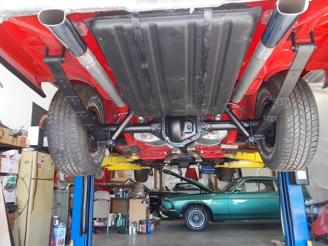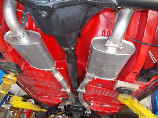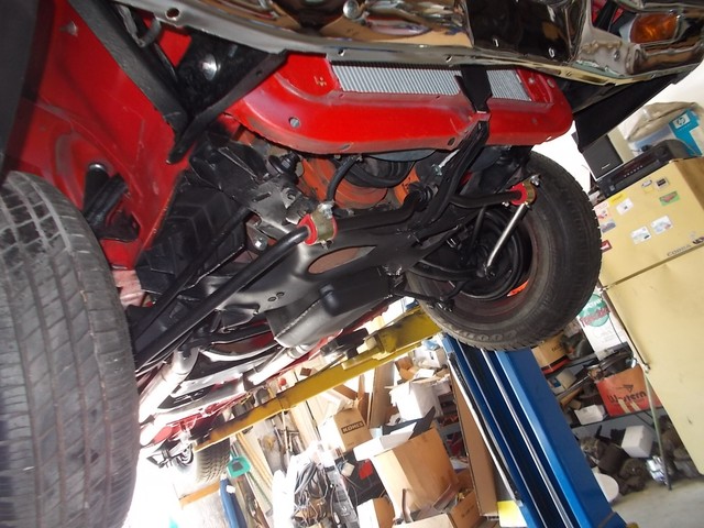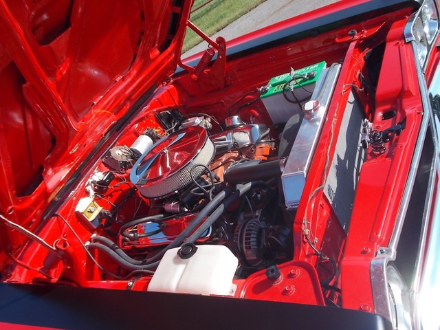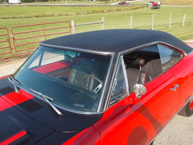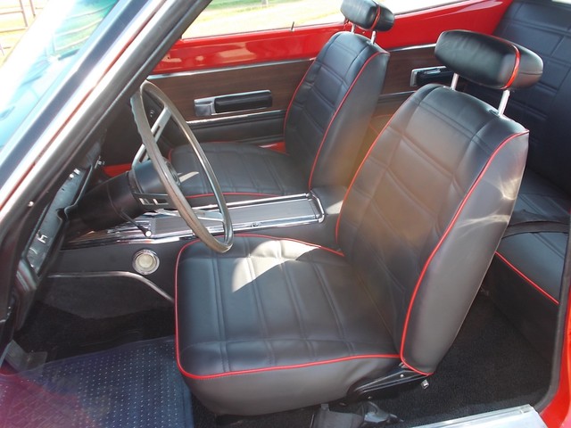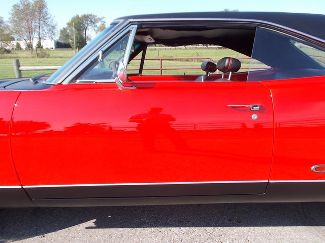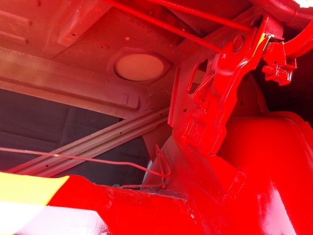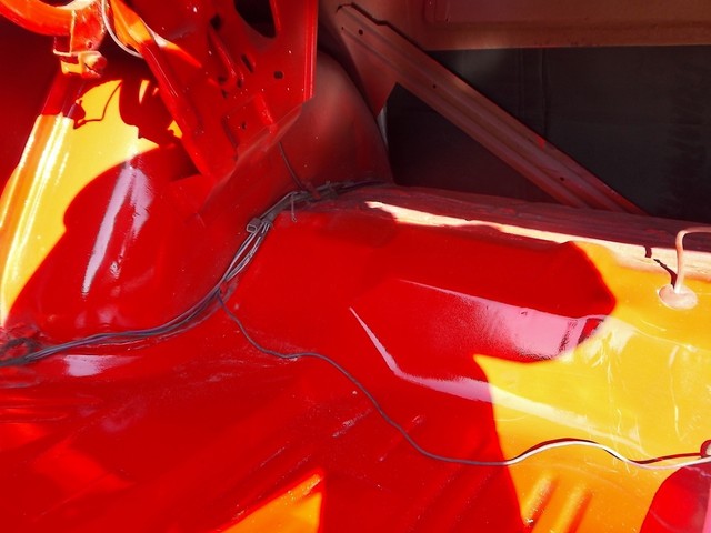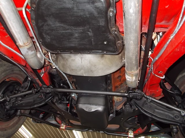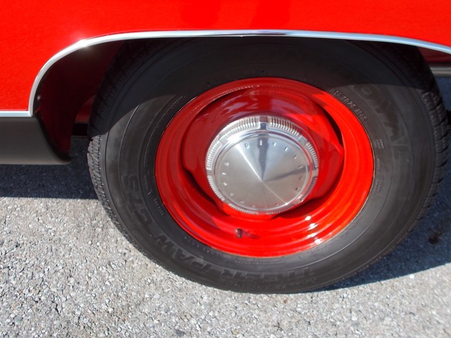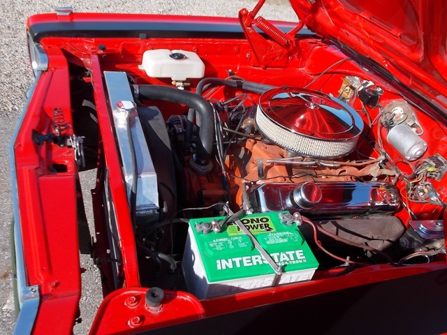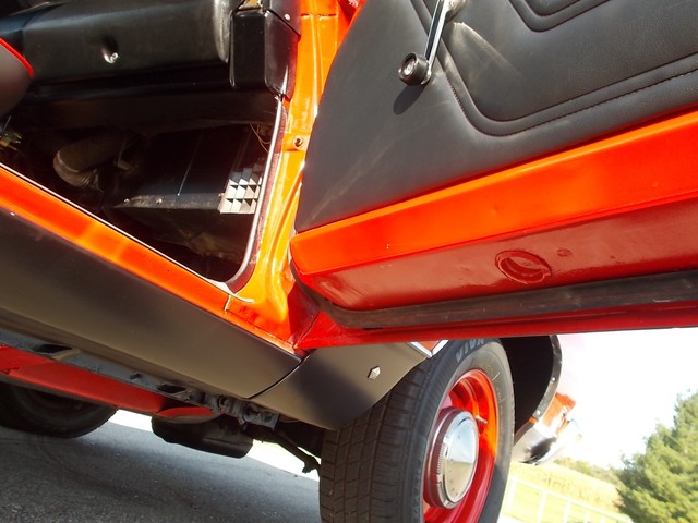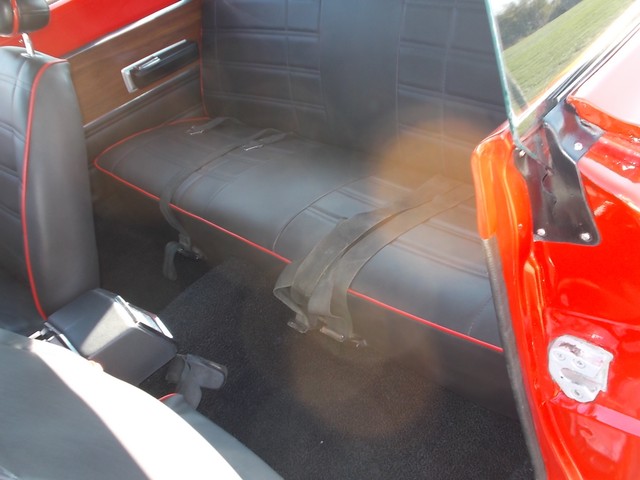 THE BODY IS LAZER STRAIGHT WITH NEAR PERFECT EXTERIOR RED PAINT HIGHLIGHTED WITH MATTE BLACK PAINTED STRIPES. IT DID NEED QUARTER SKINS, AND TRUNK PAN. FENDERS AND DOORS NEVER PATCHED. UNDERSIDE ALL PAINTED. HAS NICE LINES. DOORS WORK GREAT. DRIVER WINDOWGOES DOWN EASY BUT A LITTLE STIFF TO ROLL UP.
