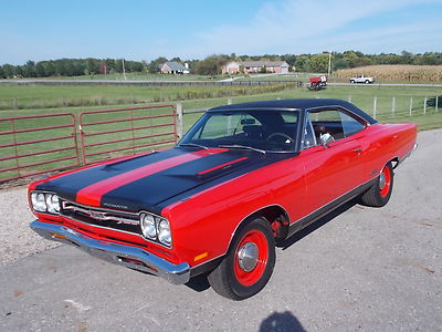 WANT A PERFECT PAINT JOB? THIS 57K ACTUAL MILE 69 GTX IS REALLY CLOSE TO PERFECT. JUST RESTORED WITH LOTS OF NICE STUFF. I HAVE THE ORIGINAL BLOCK BUT IT HAS A 72' 440 WITH AUTOMATIC ON THE FLOOR AND CONSOLE. APPEARS TO BE FACTORY DANA 60 REAREND WITH 343 GEAR. HAS POWER STEERING, TURN SIG INDICATOERS AND BUCKET SEATS WITH HEADRESTS. THE ENGINE BUILT WITH MID SIZE CAM, 4BBL, ALUMN RADIATOR, STOCK MANIFOLDS AND 2 1/2" EXHAUST WITH CHROME TIPS. ENGINE HAS OVER 10K MILES TAKEN FROM BUILDERS OTHER CAR. SHE IS VERY FAST AND SOUNDS GREAT. STEERS AND BRAKES VERY GOOD.