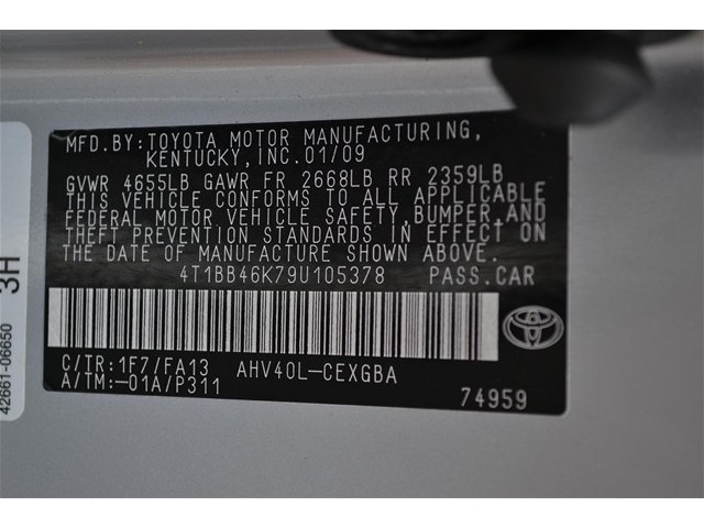 This is a 2009 Toyota Camry that isn't just your standard run of the mill Camry this sedan comes equipped with 2.5L 4-cylinder Hybrid engine giving you the MAXIMUM fuel efficiency! So you may be thinking that all the hype ends there but it doesn't because this savvy sedan comes equipped with highly praised interior features to satisfy even the toughest critics with an auxiliary audio input single disc cd player dual passenger climate control cruise control push button start voice recognition bluetooth technology all power features and a 3 car homelink! Standard features include: Remote power door locks Power windows with 1 one-touch CVT Transmission 4-wheel ABS brakes Air conditioning with dual zone climate control Cruise control Audio controls on steering wheel Traction control - ABS and driveline Tilt and telescopic steering wheel 8-way power adjustable drivers seat Passenger Airbag Head airbags - Curtain 1st and 2nd row Power mirrors Multi-function remote - Trunk/hatch/door 147 hp horsepower 2.4 liter inline 4 cylinder DOHC engine 4 Doors Front-wheel drive Fuel economy EPA highway (mpg): 34 and EPA city (mpg): 33 External temperature display Clock - In-dash Overhead console - Mini with storage Knee airbags - Driver Stability control Trip computer Steering Wheel Air Conditioning Controls
