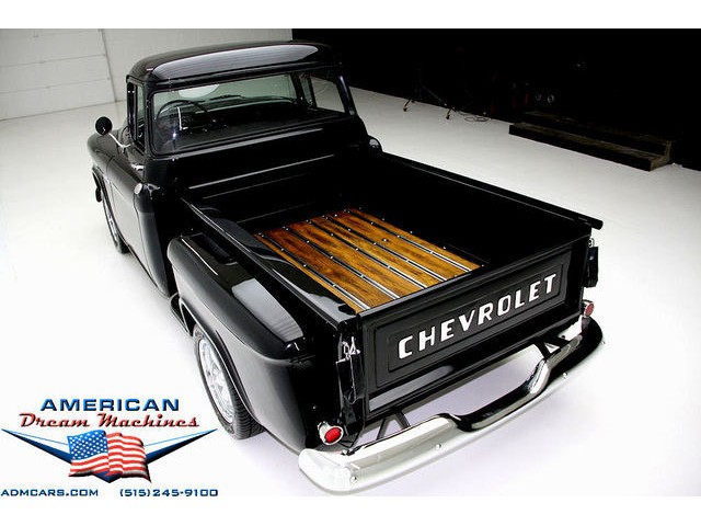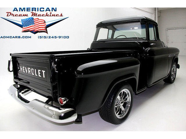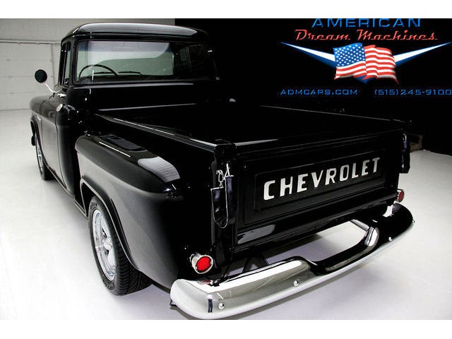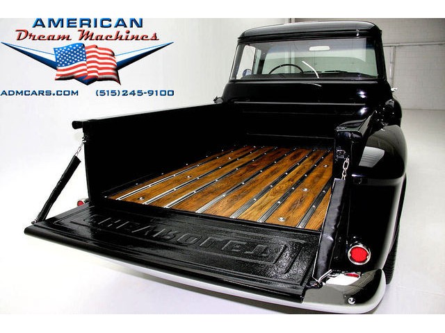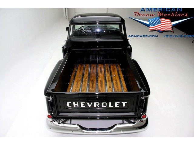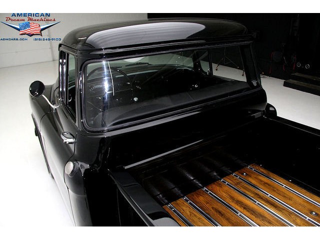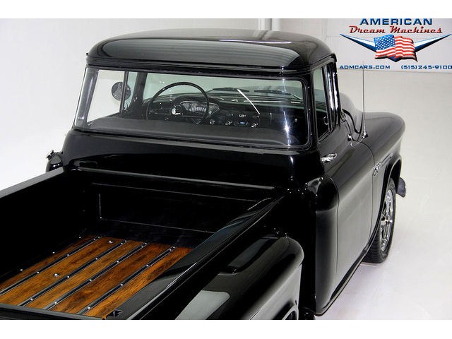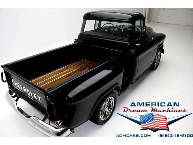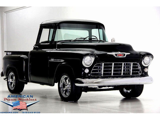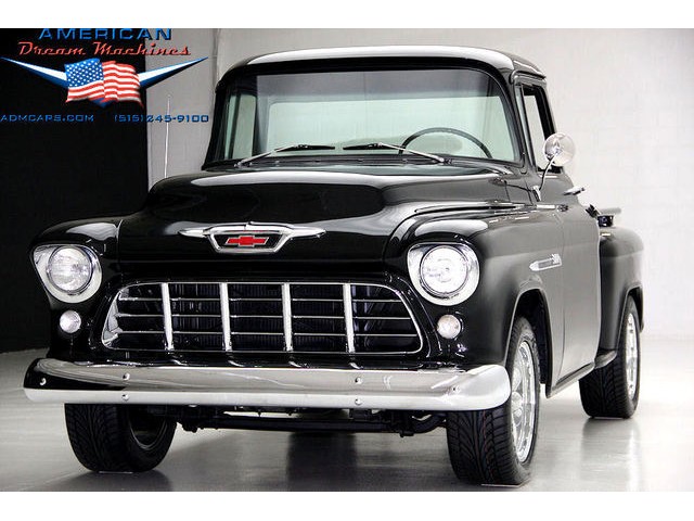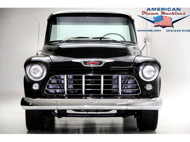 BLACK BIG BACK WINDOW 1955 CHEVY PICKUP WITH A 454 BIG BLOCK AND ROLLING ON NEW CHROME AND LOOING GOOD!!! This is a very nice 1955 Chevy black big back window, step side, short box pickup with a 454 big block and ready to roll! This little truck has a beautiful black paint job and was sprayed over a solid body. The under carriage is also very solid and structurally sound. New chrome against the black paint really stands out. New front bumper, newer grill and hood emblem. Also new bumble bee park lamp assemblies and windshield. Rear has new bumper, tail lights and tail gate chrome chains. The rest of the chrome is original and in nice condition. Pickup bed has newer oak planks and stainless steel rails. Black interior has a custom bench seat, original dash with excellent gauges and steering wheel. There is a new AM FM stereo radio and a Lokar shifter. Engine is a mid 70s Chevelle 454 with MSD ignition, that looks like it belongs there. It has original style chrome valve cover and air cleaner. Drive train is a 400 turbo 3 speed automatic transmission and a Camaro rear axle. Exhaust has cast iron manifolds, dual pipes and performance mufflers. Brand new 17 inch chrome wheels and performance tires set the truck off. Our #1 Goal at American Dream Machines is to make our customers happy with the cars we sell. This is not an easy goal to achieve when selling 40, 50 and 60 year old cars. We highly recommend that ALL CUSTOMERS call our staff and have very detailed discussions regarding overall condition of any classic car they are considering buying. We are located in the center of the Heartland in Des Moines Iowa. Our staff has midwest values and they will make every effort possible to represent our customers best interests and accurately describe the cars we sell. All older cars have older parts. If they had all new parts, they would be new cars ;-) YES, ALL OF OUR PICTURES ARE REAL, ALL THE WAY AROUND!!! Our pictures are taken in our professional photo studio for the best possible lighting and image accuracy to give our customers the most accurate representation of our cars on all sides.Vin #2550008990 (((PLEASE CALL FOR DETAILS))) 515-245-9100 American Dream Machines is located in a 41000 sq. ft. historical Packard Dealership and is one of the largest full service classic car dealerships in the Midwest. We specialize in American Muscle cars with integrity. None of our cars are consigned. All of our cars prices are always listed on our website to show the values of the cars we sell. We usually have at around 80-100 cars in stock at all times. Please call (515)-245-9100 and we will be happy to tell you about our cars. Des Moines largest classic car dealership, ''Specalizing in American muscle cars with Integrity.'' This vehicle is being sold as is, where is with no warranty, expressed written or implied. The seller shall not be responsible for the correct description, authenticity, genuineness, or defects herein, and makes no warranty in connection therewith. No allowance or set aside will be made on account of any incorrectness, imperfection, defect or damage. Any descriptions or representations are for identification purposes only and are not to be construed as a warranty of any type. It is the responsibility of the buyer to have thoroughly inspected the vehicle, and to have satisfied himself or herself as to the condition and value and to bid based upon that judgement solely. The seller shall and will make every reasonable effort to disclose any known defects associated with this vehicle at the buyer's request prior to the close of sale. Seller assumes no responsibility for any repairs regardless of any oral statements about the vehicle. x - All sales are final so please feel free to do a pre-buy inspection.