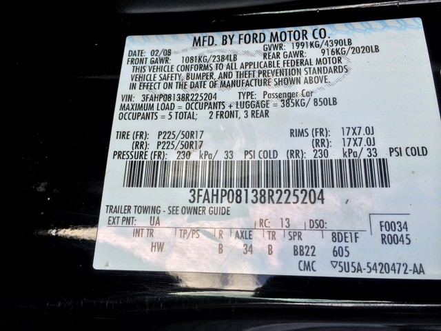 This 2008 Ford Fusion SEL V6 had only 1 Previous Owner and No Reported Accidents as shown above on the AutoCheck Report. This Fusion has 159 K on the odometer and runs fantastic. There are no warning lights on the dashboard whatsoever and no mechanical issues. This Fusion is loaded with great features: Power Windows, Power Locks, Power Mirrors, Power Sunroof, Power Drivers Seat, Cruise Control, ABS, Dual Airbags, 6 Disk In Dash CD Player, Auxillary hookup for I Phone or mp3, Hands Free Talk, Steering Wheel Controls, Ice Cold A/C and working heat and much more...ALL of which is fully operational inside the car. Also, all of the interior/exterior lights and signals are fully operational as well including the fog lights. I test drove this Ford Fusion for over 80 miles and it runs and drives beautifully. It has a solid battery and starts up everytime without any issues. The transmission shifts perfectly smooth throughout all gears which I demonstrate in the YouTube video above. There is no hesitation or jerking in the transmission whatsoever. The car handles beautifully and there are no odd noises or sounds coming from the car whatsoever. The wheel alignment is also perfectly straight and the wheel does not pull to one side or the other while driving whatsoever. There is also no vibration in the steering wheel whatsoever while driving. The suspension feels great when going over bumps or making wide turns. The brakes are also very effective and safe which I give several examples of during the test drive. The interior of this Fusion is super clean. The previous owner definitely took care of this car. The carpets look fantastic and there are no rips or tears whatseover. This was definitely a NON SMOKER vehicle, there is no smoke smell or burn holes whatsoever, the inside smells fantastic. The controls show virtually no wear inside and are all fully operational. The exterior is also in good condition overall. There is some chips in the paint on the hood and front bumper and a few dents on the passengers side door which I point out in great detail during the YouTube video above. There is also some There is also a crack in the tailight casing on the rear which is hard to notice but the brake light is working regardless. The damage is purely cosmetic and does not effect the tailight. The wheels look great and the tires are all matching. There is a spare in the trunk as shown. If you have any questions about this 2008 Ford Fusion SEL V6 sedan please feel free to send us a message or give us a call at 908-619-6227. We also encourage and welcome test drives at our dealership prior to bidding. This vehicle comes with: