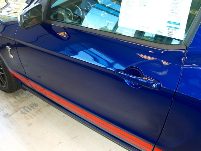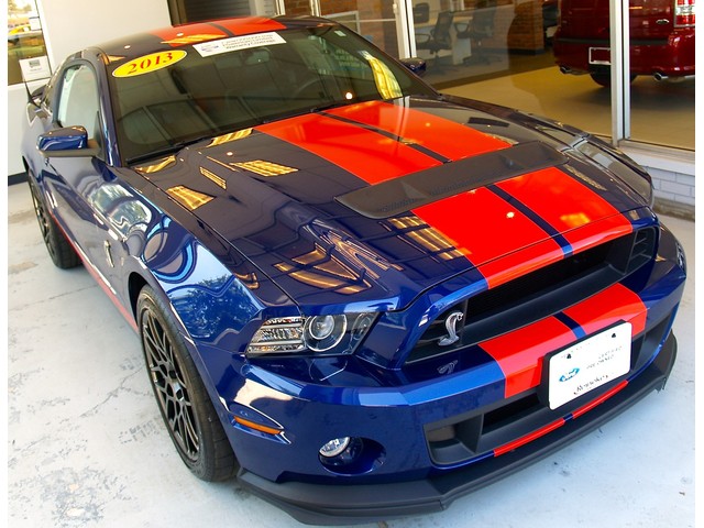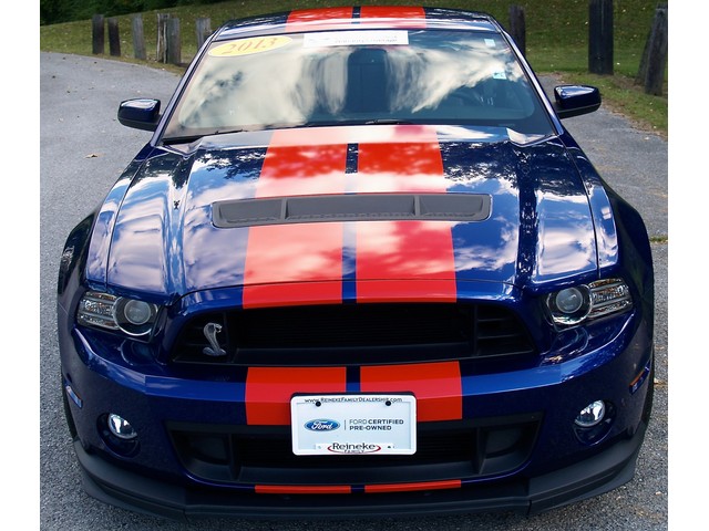 This car will be sold to the highest bidder! Here we have for sale a 2013 Shelby GT500 Coupe with a supercharged 5.8 liter V8, mated to a 6 speed Tremec manual transmission. This GT500 is in great condition! Just check out the pictures, as they speak for themselves! This Shelby GT500 has a Deep Impact Blue Metallic with Race Red stripes on the exterior and a charcoal with red striped leather interior. It is loaded with options like, power windows and locks, leather seats, Homelink system, stripe package, SVT Performance Package, HID headlamps, premium audio system, and much more. It does have a few blemishes shown in the pictures. A small piece is missing out of the GT500 sticker/graphic and there is a small place that has been touched up on the rear bumper. Overall, pretty clean, but the blemishes needed to be mentioned and are clearly shown in the pictures. If you have any questions, please ask. It has been detailed, inspected and is ready for immediate delivery!