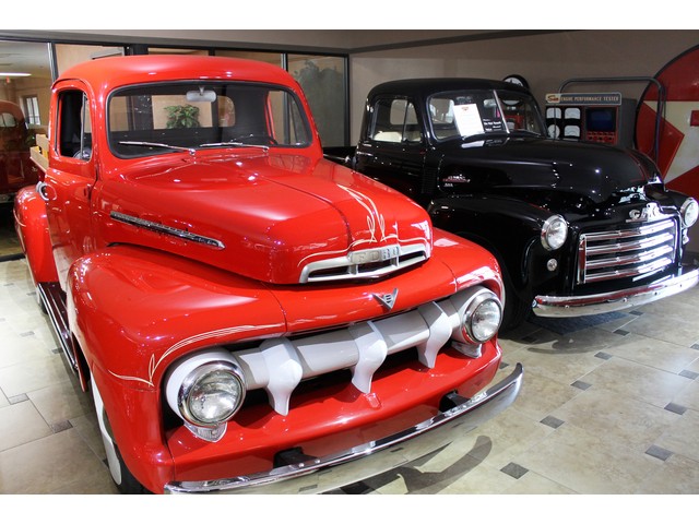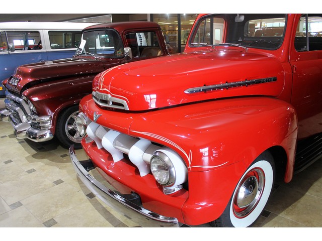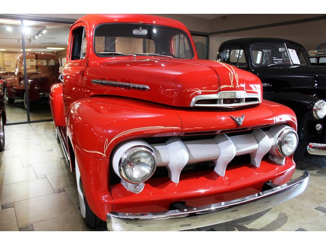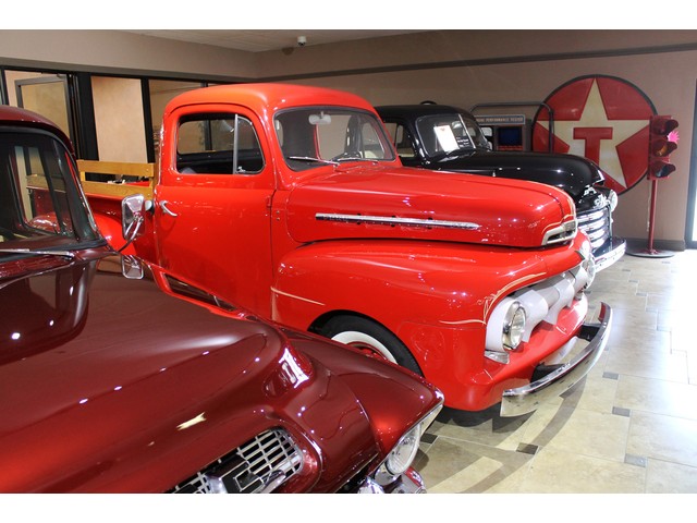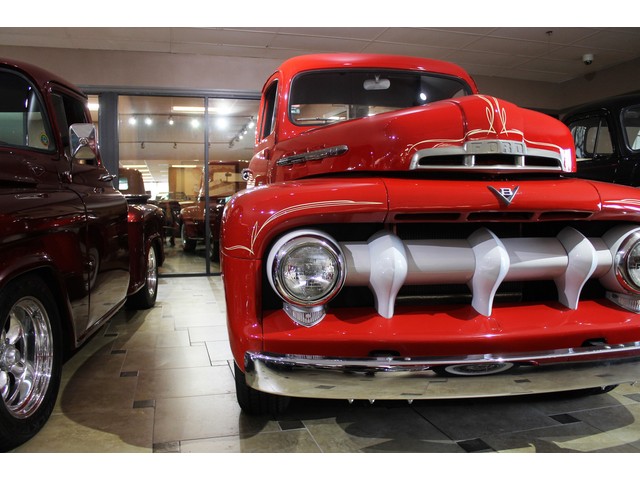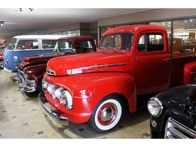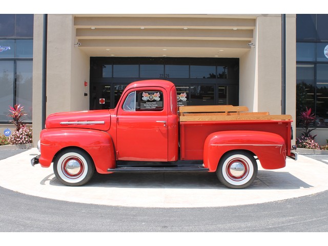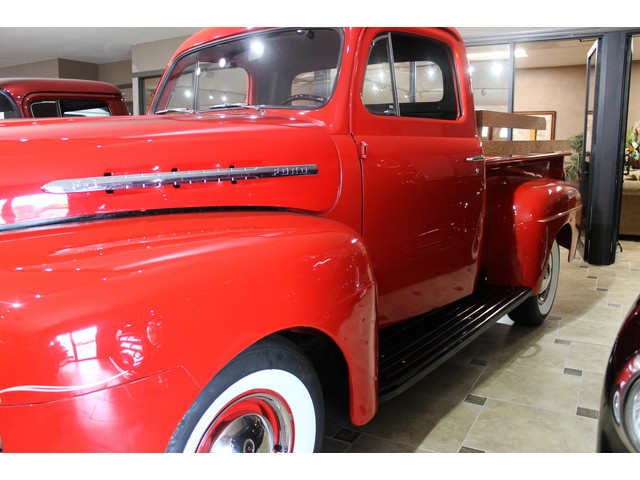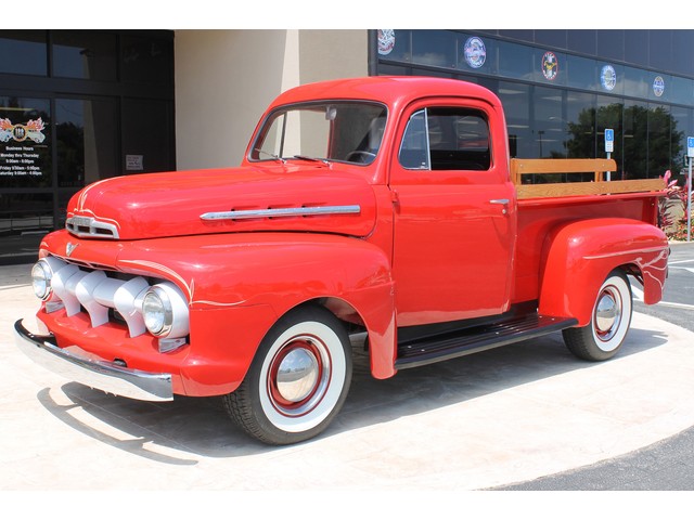1951 Ford F1 Pickup. Finished in Bright Red paint with a clean black interior. Powered by an original 239CI Flathead V8 mated to a 3 speed column shift manual transmission. This gorgeous truck features a 12V conversion, new front and rear bumpers, new whitewall radial tires, new oak bed and bed rails, and custom pin striping. This is a true piece of Americana that will turn heads everywhere you drive. We have several other classic trucks in stock, so if this is not quite what you are looking for, contact us for more options!