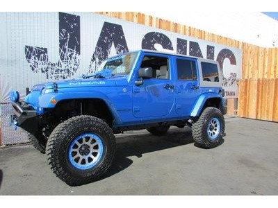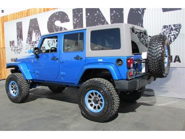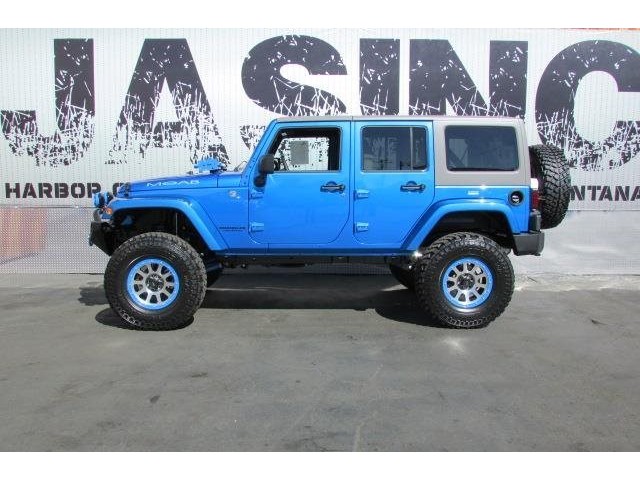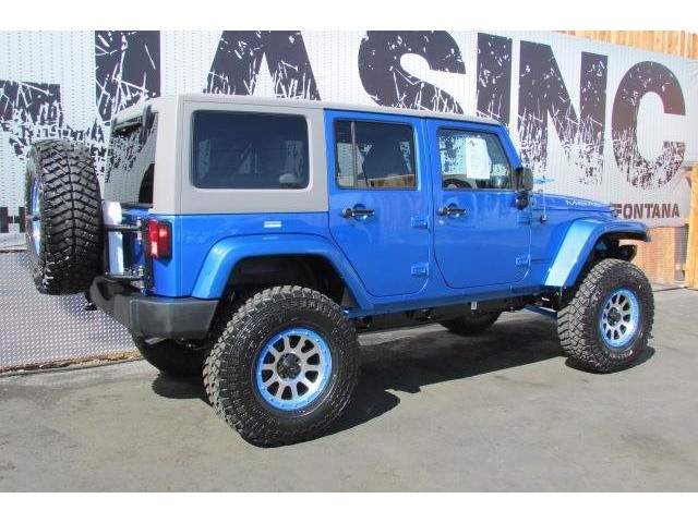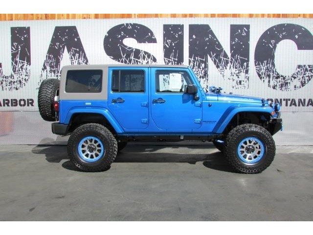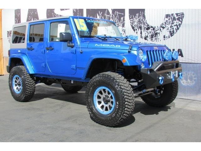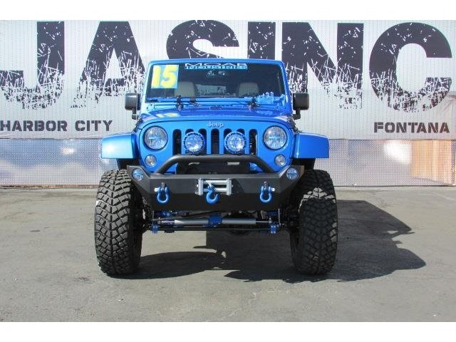 This 2015 Jeep Wrangler Unlimited 4dr MOAB STAGE 4 SUV features a 3.6L V6 CYLINDER 6cyl engine. It is equipped with a 5 Speed Automatic transmission. The vehicle is COSMO BLUE with a WHITE interior. It is covered by a limited warranty. - Vehicle 2015 Jeep Wrangler 4WD Unlimited Sport Standard Features Power Windows\, Power Locks\, Power Mirrors\, Leather Seats\, Tinted Glass\, Navigation\, DVD PLAYER\, Keyless Entry\, Steering Wheel Controls\, CD Player\, AM/FM Radio\, Premium Audio\, Cruise Control\, Traction Control\, Bluetooth. 8 8 LINK SUSPENSION FRONT BUMPER SYSTEM 9500 LB WINCH KC DAYLIGHTERS/ LED SWING AWAY SPARE WITH ROTO PAX FUEL CANS HI LIFT JACK COLOR CODE BEAD-LOCKS 37 DIRECTIONAL MUDDERS COLOR CODE HARDTOP PREMIUM BONE LEATHER Warranty Information Jim's Auto Sales\, INC. 30 day worry free guarantee with CARFAX certification. - Air Conditioning\, Cruise Control\, Power Steering\, Power Door Locks\, Clock\, Tachometer\, Tilt Steering Wheel\, Steering Wheel Radio Controls\, Driver Airbag\, Passenger Airbag\, ABS Brakes\, Fog Lights\, Intermittent Wipers\, AM/FM\, CD Player\,\, Aux. Audio Input\, Center Arm Rest\, Roll Stability Control\, Child Proof Door Locks\, Vanity Mirrors\, Premium Sound\, Off Road Tires - Contact Harbor City: 310-830-0033 / Lomita: 310-784-0600 / Fontana: 909-452-8262 at See-Locations or admin@jimsautosalesla.com for more information. -