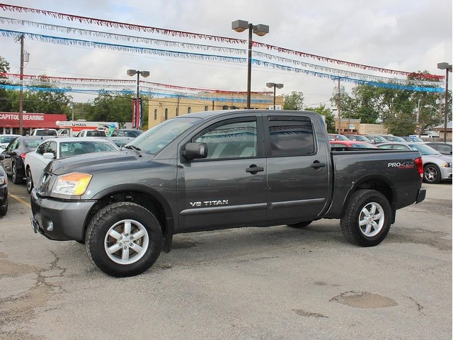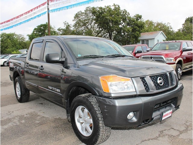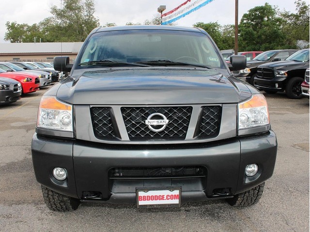 Rule the roads in this sporty gray 2008 Dodge Nissan Titan Pro-4X Off Road Crew cab pick-up at a great deal! This impressive Nissan is loaded with a durable black interior, a bed liner, power seats, CD player, cruise control, and much more. This vehicle's powerful 5.6LTR V8 engine is in perfect working condition for excellent towing capacity! The tires have at least 3/4 of their life span left, & the mileage represented is 100% accurate. With a smooth shifting manual transmission & all power equipment working properly, each ride will be one of adventure & pleasure!