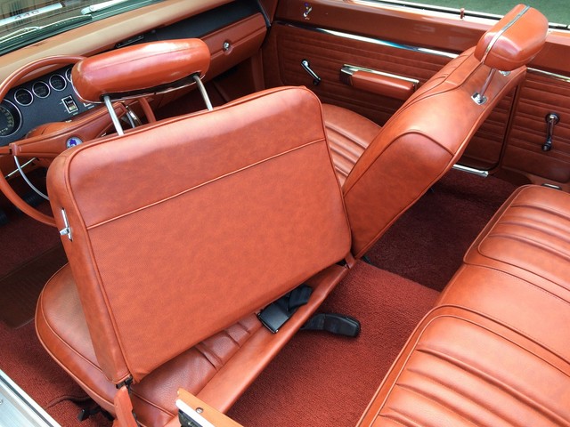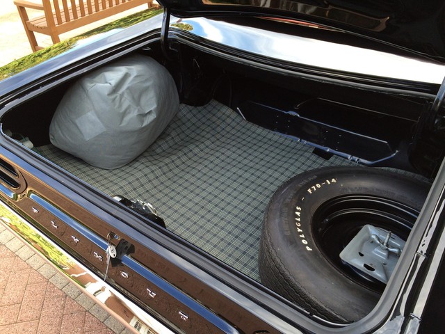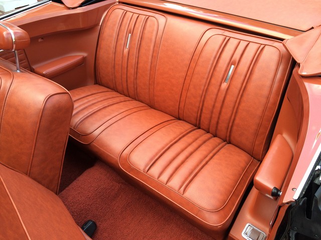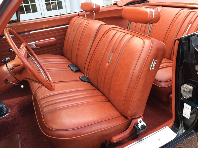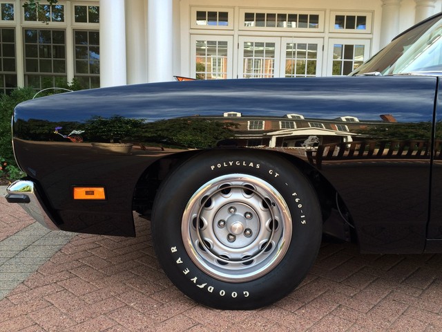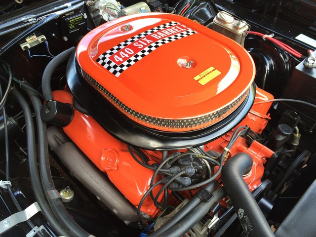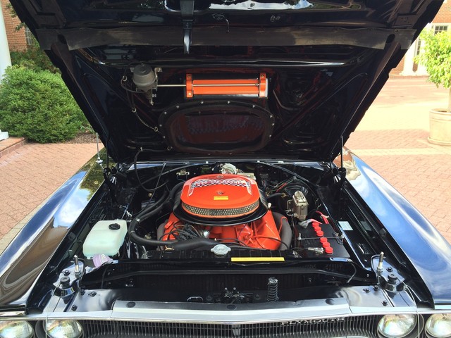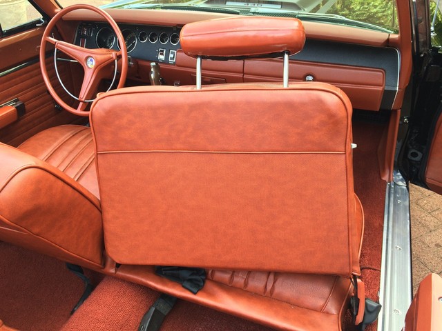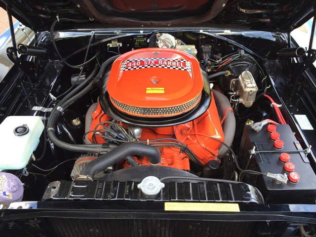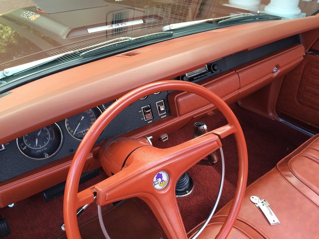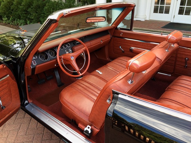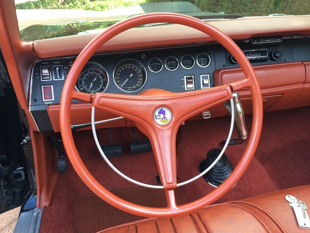 It was further qualified by being fully decoded by Galen Govier and registered in the Chrysler Registry. Restored in its original color combo of TX9 Black Velvet with a burnt orange deluxe interior and white top, it stands out as a very unique Road Runner. A few of the significant options include the D21 Hemi four-speed, A33 Track Pack 3:54 Dana rear end, B51 power disc brakes, V8W white reflective tail stripe and the 26-inch Hemi radiator.
