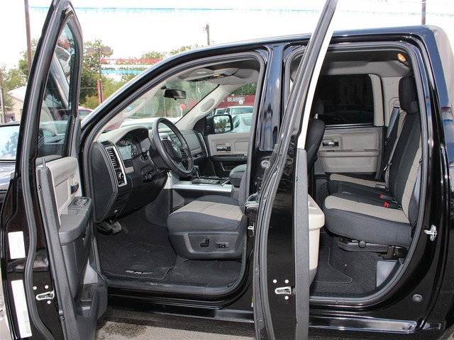 Rule the roads in this bold black 2012 Certified Pre-Owned Ram 1500 Lone Star Quad Cab pickup at a great deal! This luxury Ram is loaded with a durable black interior, MP3, Sirius XM radio, cruise control, CD player, auxiliary input, power seats, windows, and locks, and so much more. This is a smoke free truck & the interior is absolutely free of rips, odors, or abuse. This vehicle's powerful 5.7 LTR V8 HEMI engine is in perfect working condition for excellent towing capacity! There are no noticeable dings on the exterior, & the shiny extra clean finish makes this used auto look BRAND new. The tires have at least 3/4 of their life span left, & the LOW mileage represented is 100% accurate.