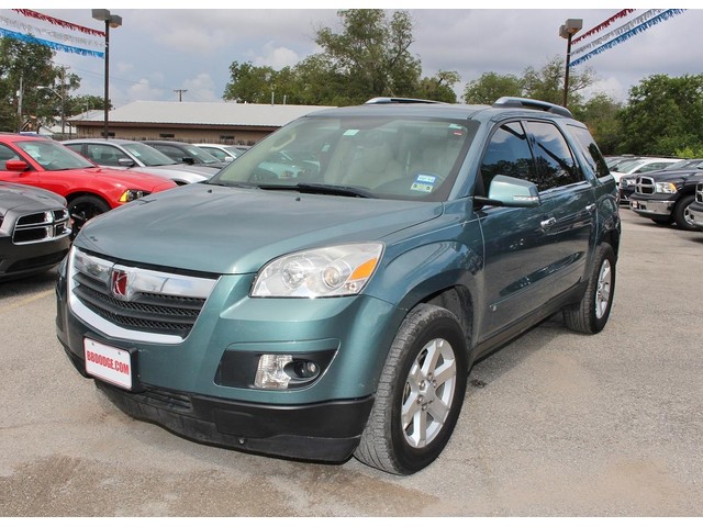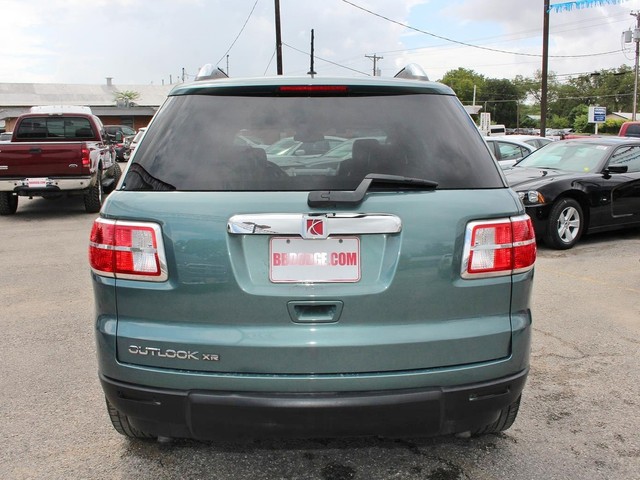 Purchase this stylish green 2009 Saturn Outlook XR at a great deal today! This sporty SUV is loaded with luxurious tan leather interior, MP3, CD Player, Cruise Control, roof rack, third row seating, OnStar, power seats, windows, & locks, and so much more. This is a smoke free car & the interior is absolutely free of rips, odors, or abuse. This vehicle's 3.6LTR 6 cylinder engine is in perfect working condition for excellent gas mileage! The tires have at least 3/4 of their life span left, & the mileage represented is 100% accurate. With a smooth shifting automatic transmission & all power equipment working properly, each ride will be one of excitement & pleasure!