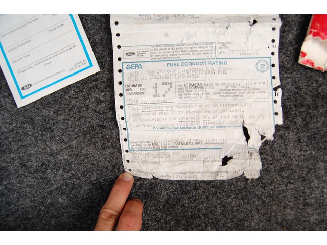 Up for auction is an all original 1984 Ford LTD Crown Victoria with just 39K original miles. This time capsule is completely original and is in excellent condition. I recently purchased it out of North Carolina and it original came from Virginia. Harry Pritchett bought this car on 11/06/1983 for a total cost of $15,666.00. Barkhouser Motors INC of Danville, VA sold the car new. I have the original window sticker, protecto plate, and owners manuals. This car appears to retain the original finish which is a midnight blue metallic.