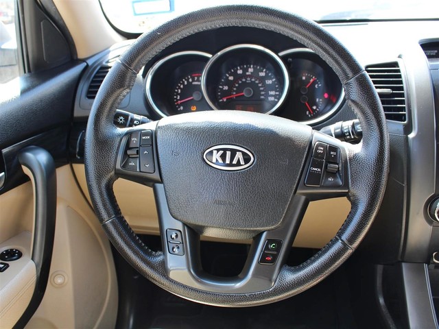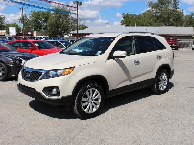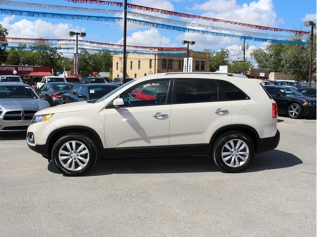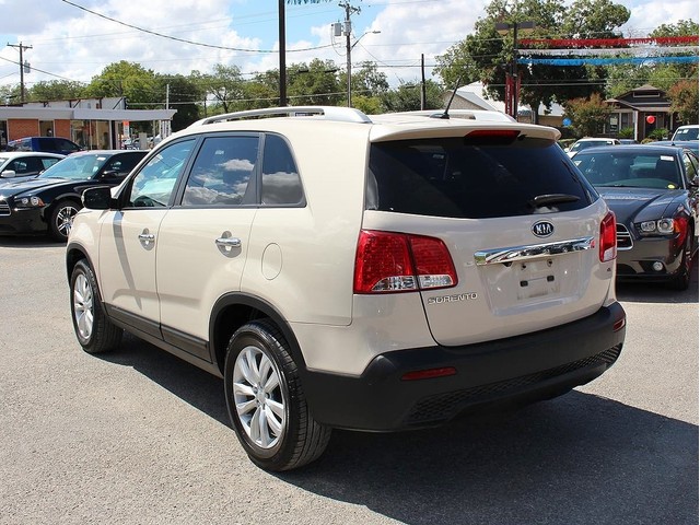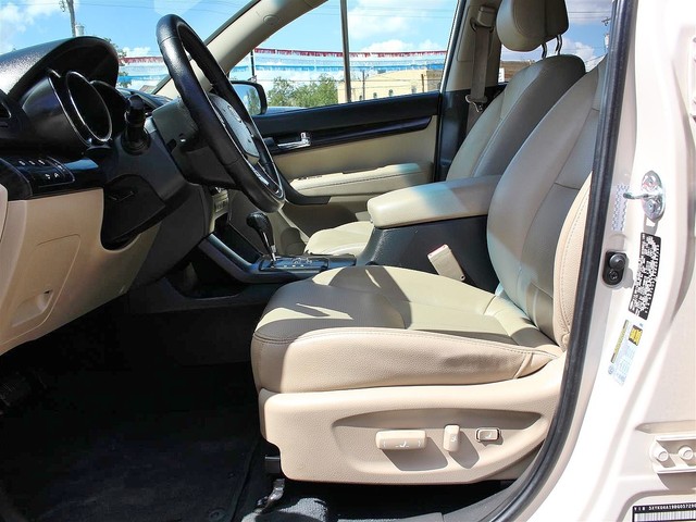 Purchase this classy white 2011 Kia Sorento EX a great deal! This spacious SUV is loaded with tan leather interior, a roof rack, 3rd row, MP3, SIRIUS XM radio, Bluetooth, parking sensors, alloy wheels, power seat, cruise control, & fold away back seats for storage. This is a smoke free Kia & the interior is absolutely free of rips, odors, or abuse. This vehicle's 2.4L 4 cylinder engine is in perfect working condition for excellent gas mileage while safely hauling the whole family around! There are no noticeable dings on the exterior, & the shiny extra clean finish makes this used auto look like new. The tires have at least 3/4 of their life span left, & the mileage represented is 100% accurate. With a smooth shifting automatic transmission & all power equipment working properly, each ride will be one of comfort & pleasure!