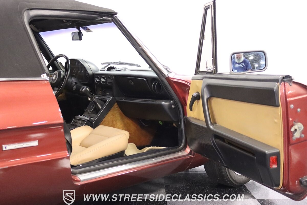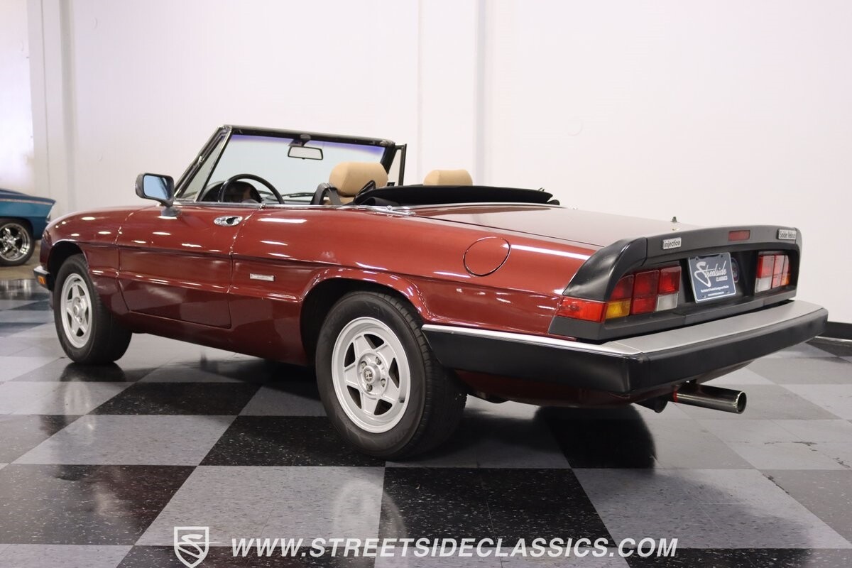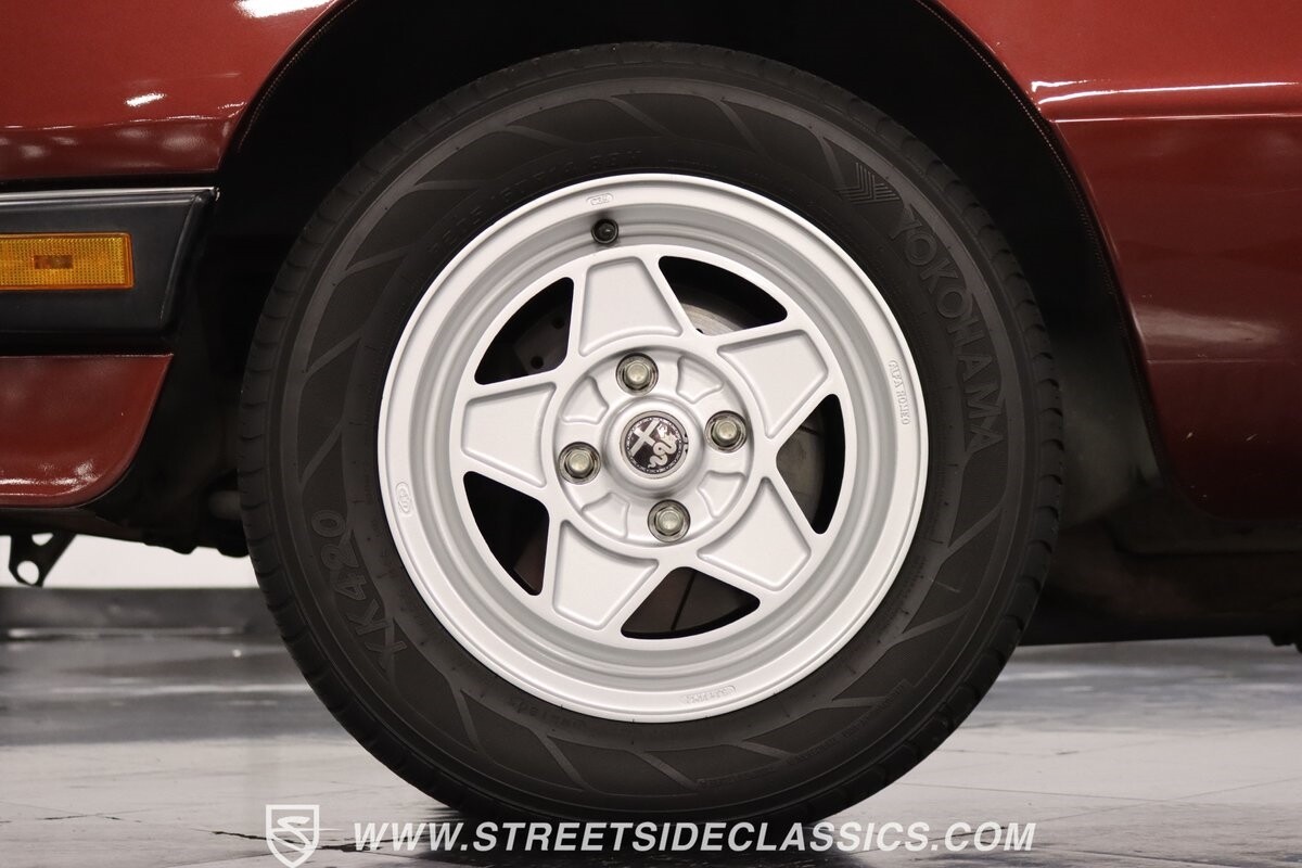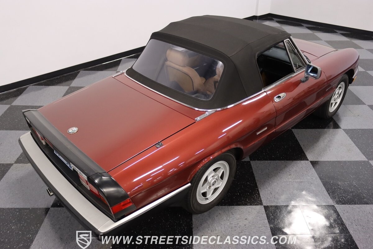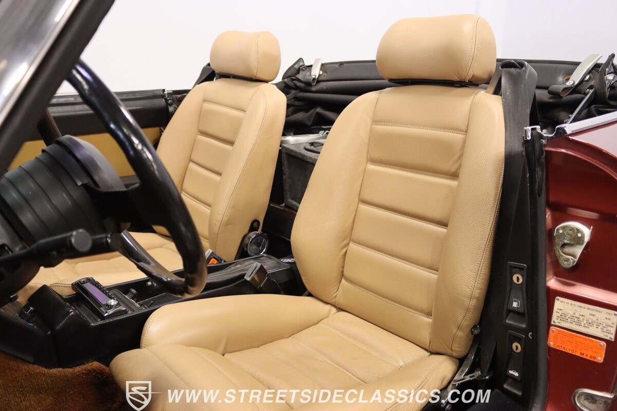 The 1988 Alfa Romeo Spider Veloce stands as a testament to the brand's commitment to performance and style, featuring enhancements like electronic fuel injection and aerodynamic refinements that distinguished it from its predecessors. This 1988 Alfa Romeo Spider Veloce is a true representation of Italian craftsmanship and the original maroon exterior continues that impression by tying in the performance with a classic look. Under the hood, the 2.0-liter gasoline engine with electronic fuel injection is paired with a responsive 5-speed manual transmission, offering an engaging driving experience synonymous with the Alfa Romeo name and the performance on the road speaks for itself. The interior features beige leather bucket seats that are original and correct, possibly reconditioned to their current impressive condition and modern touches include an updated head unit and speakers, enhancing the driving pleasure without compromising the vehicle's vintage charm.