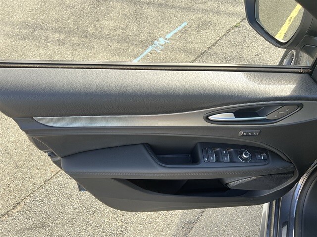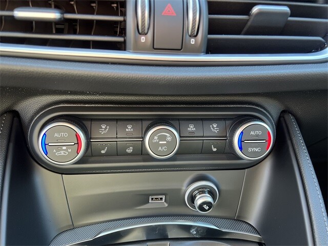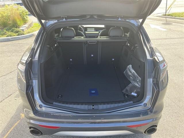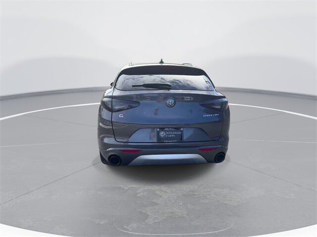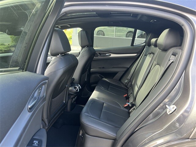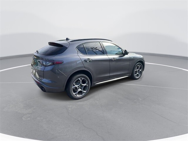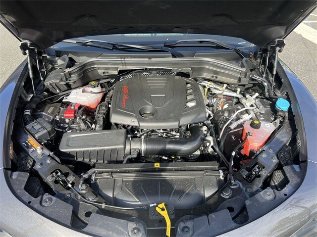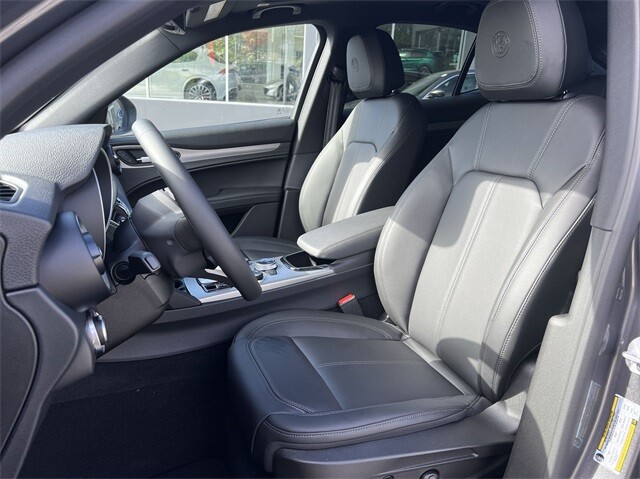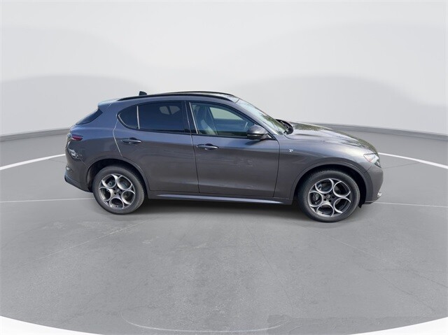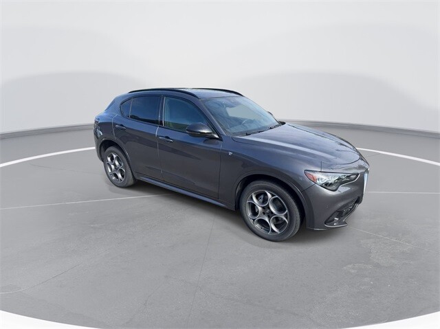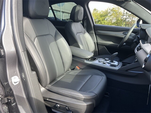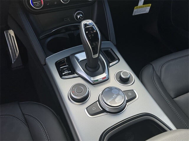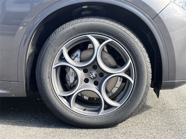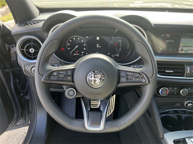 This Stelvio Ti is nicely equipped with Quick Order Package 22G Ti, Apple CarPlay/Android Auto, Auto High-beam Headlights, Auto-dimming door mirrors, Auto-dimming Rear-View mirror, Automatic temperature control, Brake assist, Compass, Electronic Stability Control, Four wheel independent suspension, Front dual zone A/C, Garage door transmitter, Heated door mirrors, Heated front seats, Heated rear seats, Heated steering wheel, High-Intensity Discharge Headlights, Illuminated entry, Memory seat, Navigation System, Outside temperature display, ParkView Rear Back-Up Camera, Power door mirrors, Power driver seat, Power Liftgate, Power moonroof, Power passenger seat, Power steering, Power windows, Radio: AM/FM/HD 8.8 w/Navigation, Rain sensing wipers, Rear audio controls, Rear window defroster, Rear window wiper, Remote keyless entry, Security system, Speed control, Speed-sensing steering, Steering wheel mounted audio controls, Traction control, Turn signal indicator mirrors, 3.73 Axle Ratio, 4-Wheel Disc Brakes, 8 Speakers, ABS brakes, Air Conditioning, Alloy wheels, AM/FM radio: SiriusXM, Bumpers: body-color, Delay-off headlights, Driver door bin, Driver vanity mirror, Dual front impact airbags, Dual front side impact airbags, Emergency communication system: Alfa Connect, Front anti-roll bar, Front Bucket Seats, Front Center Armrest, Front reading lights, Fully automatic headlights, Knee airbag, Leather Seats, Leather Shift Knob, Low tire pressure warning, Occupant sensing airbag, Overhead airbag, Overhead console, Panic alarm, Passenger door bin, Passenger vanity mirror, Radio data system, Rear anti-roll bar, Rear fog lights, Rear reading lights, Rear seat center armrest, Roof rack: rails only, Speed-Sensitive Wipers, Split folding rear seat, Spoiler, Sport steering wheel, Tachometer, Telescoping steering wheel, Tilt steering wheel, Trip computer, Variably intermittent wipers, and Wheels: 19 x 8.0 Sport 5-Hole Aluminum.