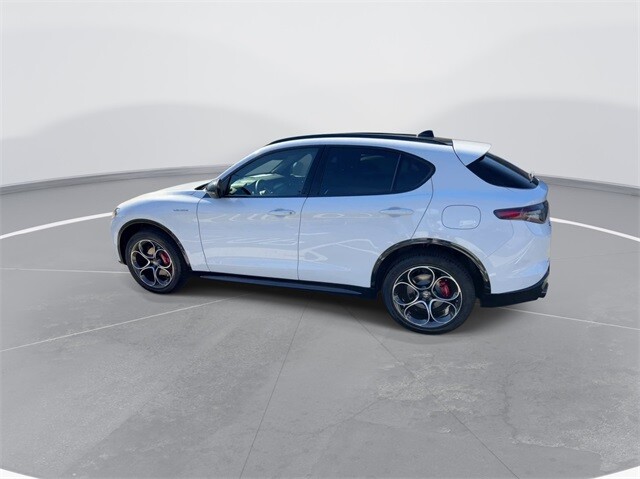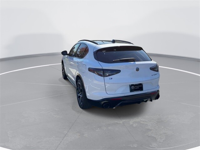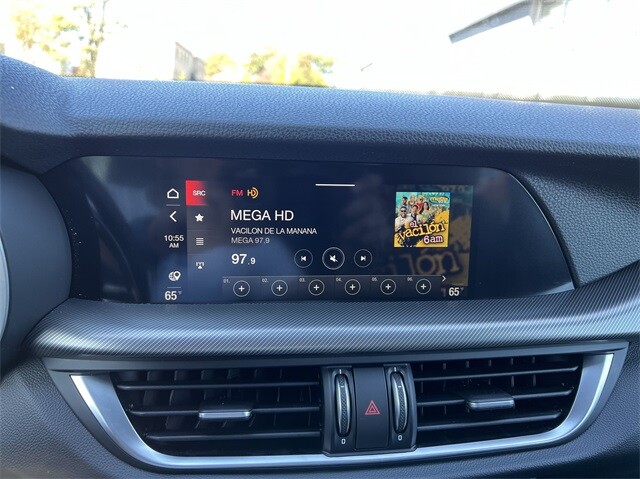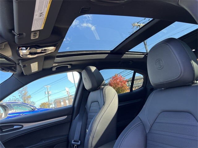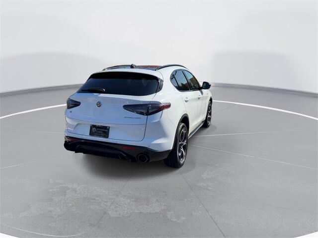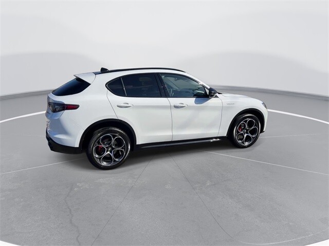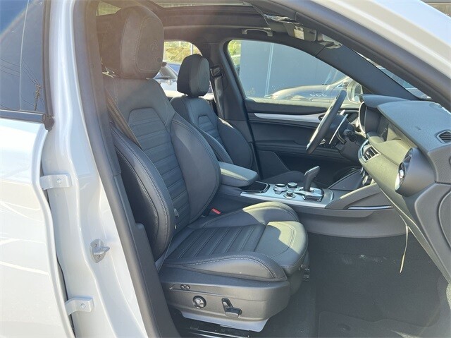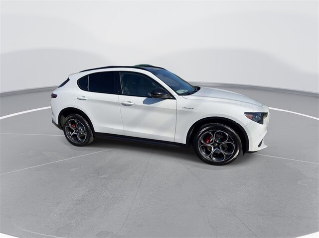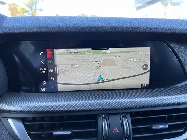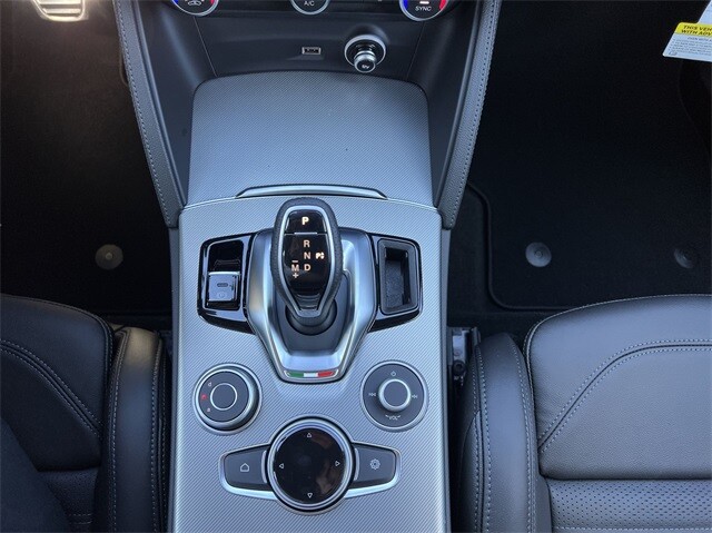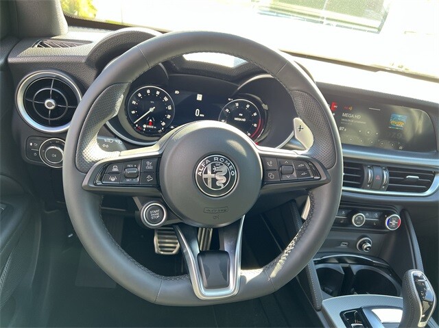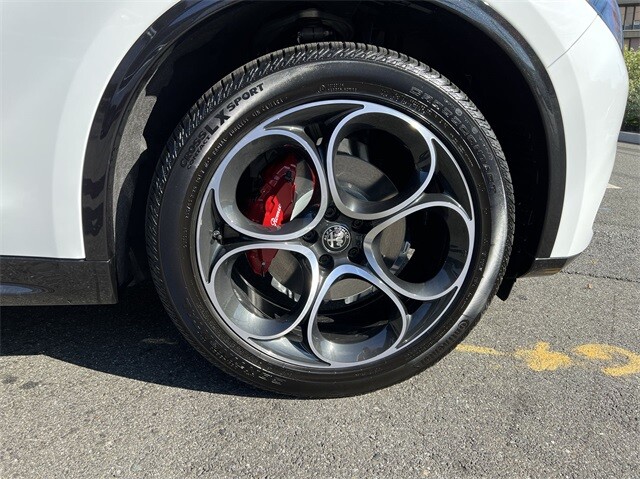 This Stelvio Veloce Ti is nicely equipped with Apple CarPlay/Android Auto, Auto High-beam Headlights, Auto-dimming door mirrors, Auto-dimming Rear-View mirror, Automatic temperature control, Brake assist, Compass, Electronic Stability Control, Four wheel independent suspension, Front dual zone A/C, Garage door transmitter, Heated door mirrors, Heated front seats, Heated rear seats, Heated steering wheel, High-Intensity Discharge Headlights, Illuminated entry, Memory seat, Navigation System, Outside temperature display, ParkView Rear Back-Up Camera, Power door mirrors, Power driver seat, Power Liftgate, Power moonroof, Power passenger seat, Power steering, Power windows, Radio: AM/FM/HD 8.8 w/Navigation, Rain sensing wipers, Rear audio controls, Rear window defroster, Rear window wiper, Remote keyless entry, Security system, Speed control, Speed-sensing steering, Steering wheel mounted audio controls, Traction control, Turn signal indicator mirrors, 3.73 Axle Ratio, 4-Wheel Disc Brakes, 8 Speakers, ABS brakes, Air Conditioning, Alloy wheels, AM/FM radio: SiriusXM, Bumpers: body-color, Delay-off headlights, Driver door bin, Driver vanity mirror, Dual front impact airbags, Dual front side impact airbags, Front anti-roll bar, Front Bucket Seats, Front Center Armrest, Front reading lights, Fully automatic headlights, Knee airbag, Leather Seats, Leather Shift Knob, Low tire pressure warning, Occupant sensing airbag, Overhead airbag, Overhead console, Panic alarm, Passenger door bin, Passenger vanity mirror, Radio data system, Rear anti-roll bar, Rear fog lights, Rear reading lights, Rear seat center armrest, Roof rack: rails only, Speed-Sensitive Wipers, Split folding rear seat, Spoiler, Sport steering wheel, Tachometer, Telescoping steering wheel, Tilt steering wheel, Trip computer, Variably intermittent wipers, and Wheels: 19 x 8.0 Sport 5-Hole Aluminum.