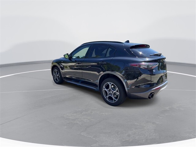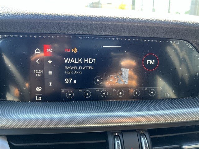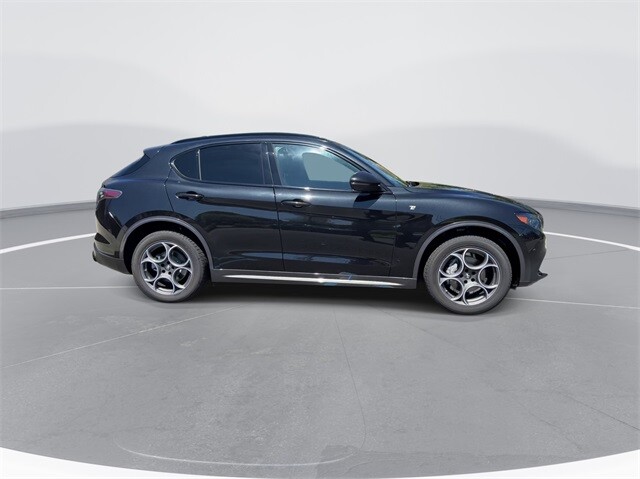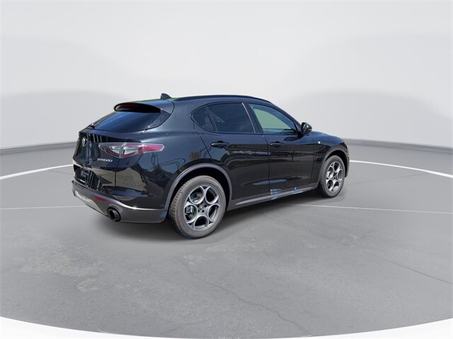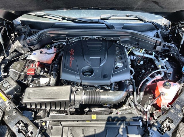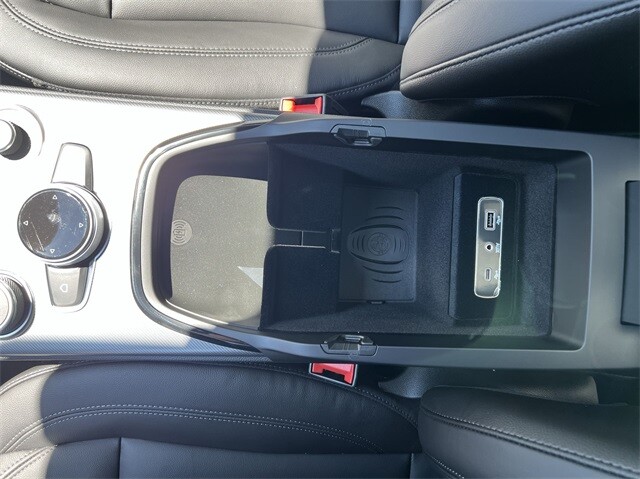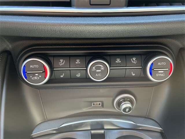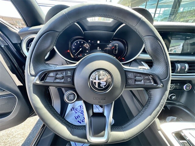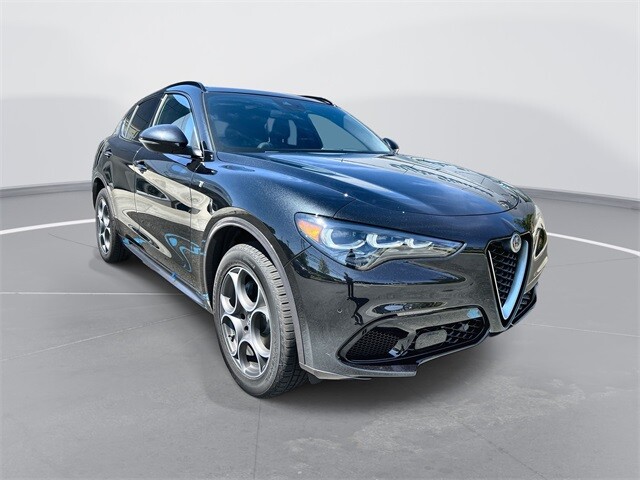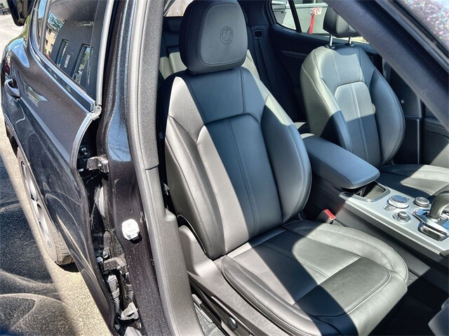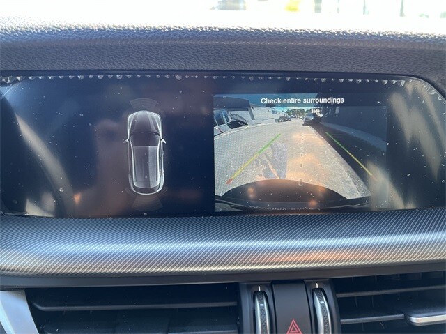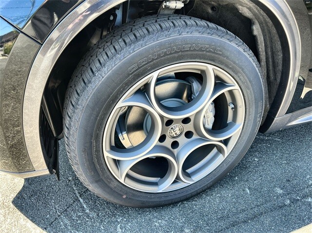This Stelvio Ti is nicely equipped with Quick Order Package 22G Ti, Apple CarPlay/Android Auto, Auto High-beam Headlights, Auto-dimming door mirrors, Auto-dimming Rear-View mirror, Automatic temperature control, Brake assist, Compass, Electronic Stability Control, Four wheel independent suspension, Front dual zone A/C, Garage door transmitter, Heated door mirrors, Heated front seats, Heated rear seats, Heated steering wheel, High-Intensity Discharge Headlights, Illuminated entry, Memory seat, Navigation System, Outside temperature display, ParkView Rear Back-Up Camera, Power door mirrors, Power driver seat, Power Liftgate, Power moonroof, Power passenger seat, Power steering, Power windows, Radio: AM/FM/HD 8.8 w/Navigation, Rain sensing wipers, Rear audio controls, Rear window defroster, Rear window wiper, Remote keyless entry, Security system, Speed control, Speed-sensing steering, Steering wheel mounted audio controls, Traction control, Turn signal indicator mirrors, 3.73 Axle Ratio, 4-Wheel Disc Brakes, 8 Speakers, ABS brakes, Air Conditioning, Alloy wheels, AM/FM radio: SiriusXM, Bumpers: body-color, Delay-off headlights, Driver door bin, Driver vanity mirror, Dual front impact airbags, Dual front side impact airbags, Emergency communication system: Alfa Connect, Front anti-roll bar, Front Bucket Seats, Front Center Armrest, Front reading lights, Fully automatic headlights, Knee airbag, Leather Seats, Leather Shift Knob, Low tire pressure warning, Occupant sensing airbag, Overhead airbag, Overhead console, Panic alarm, Passenger door bin, Passenger vanity mirror, Radio data system, Rear anti-roll bar, Rear fog lights, Rear reading lights, Rear seat center armrest, Roof rack: rails only, Speed-Sensitive Wipers, Split folding rear seat, Spoiler, Sport steering wheel, Tachometer, Telescoping steering wheel, Tilt steering wheel, Trip computer, Variably intermittent wipers, and Wheels: 19 x 8.0 Sport 5-Hole Aluminum.
