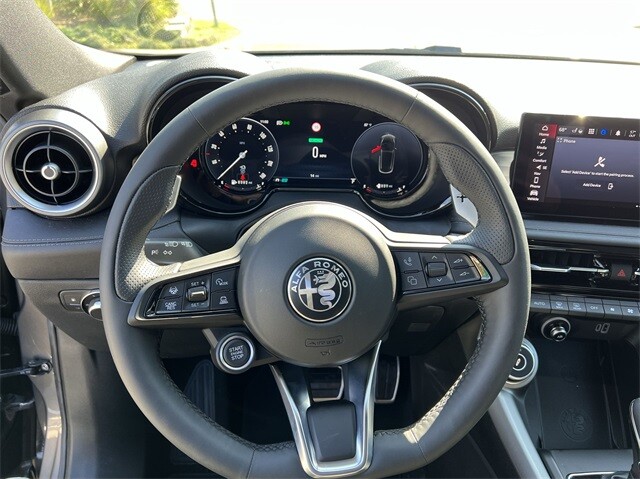 This Tonale Veloce is nicely equipped with Active Assist Package (DISC) (Active Driving Assist System, Auto-Dimming Rear Exterior Mirrors, ParkSense Front/Rear/Side Park Assist, and Surround View Camera System), Premium Interior & Sound Package (Driver Seat Memory, harman/kardon Premium Audio, Perforated Leather Seat, and Ventilated Front Seats), Quick Order Package 28E, Adaptive suspension, Apple CarPlay/Android Auto, Auto High-beam Headlights, Auto-dimming Rear-View mirror, Automatic temperature control, Brake assist, Compass, Electronic Stability Control, Four wheel independent suspension, Front dual zone A/C, Fully automatic headlights, Garage door transmitter, Heated door mirrors, Heated front seats, Heated steering wheel, Illuminated entry, Navigation System, Outside temperature display, ParkView Rear Back-Up Camera, Power door mirrors, Power driver seat, Power Liftgate, Power Moonroof, Power passenger seat, Power steering, Power windows, Radio: Uconnect 5 Nav w/10.25 Display, Rain sensing wipers, Rear window defroster, Rear window wiper, Remote keyless entry, Security system, Speed control, Steering wheel mounted audio controls, Traction control, Turn signal indicator mirrors, 4-Wheel Disc Brakes, 6 Speakers, ABS brakes, Air Conditioning, Alloy wheels, AM/FM radio: SiriusXM, Anti-whiplash front head restraints, Bumpers: body-color, Delay-off headlights, Driver door bin, Driver vanity mirror, Dual front impact airbags, Dual front side impact airbags, Emergency communication system, Front anti-roll bar, Front Bucket Seats, Front Center Armrest w/Storage, Front fog lights, Front reading lights, Knee airbag, Leather steering wheel, Low tire pressure warning, Manufacturer's Statement of Origin, Occupant sensing airbag, Overhead airbag, Overhead console, Panic alarm, Passenger door bin, Passenger vanity mirror, Perforated Alcantara Seats, Rear anti-roll bar, Rear seat center armrest, Split folding rear seat, Spoiler, Sport steering wheel, Tachometer, TBD Axle Ratio, Telescoping steering wheel, Tilt steering wheel, Trip computer, Variably intermittent wipers, Wheels: 19 x 8.0 Diamond Cut 5-Hole, and Wheels: 20 x 8.0 Grigio 5-Hole.