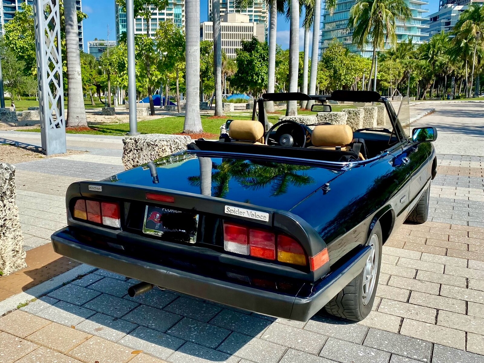 I have owned this Spider since 2012, always kept in a high rise garage (no flood!!). Fun car to drive but we have four other classics incl another Spider being restored. Note that the car has factory AC but doesn’t blow cold, I only drive the car in good weather so I never had the system recharged. If you are not familiar with Alfa Romeo Spiders, this is a Spider Veloce which, unlike the less valuable Spider Graduate, has leather seats, alloy rims, power windows and cloth convertible top. All Spiders of that era uses the very reliable Bosch Jetronic fuel injection and ignition system.Vehicle Details