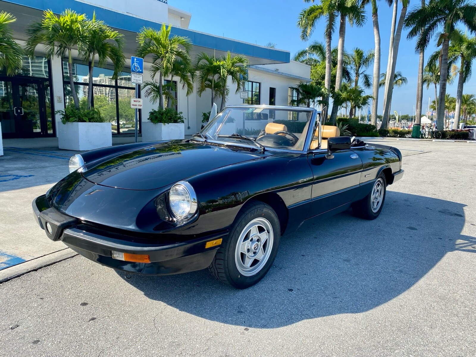 84k miles Black with biscuit leather interior Restored 2018 incl paint, interior, new outer sills, floor repair. Original rims stripped and painted. New OEM cloth convertible top march 2023. Stock and original except for exhaust headers. Maintained by Alfa specialist, recent maintenance incl new brake master and booster (2021), new injector hoses in addition to routine items like brake pads, plugs, belts etc. New head gasket in 2017. Performance Falken Azenis tires (2 new, April 2023) Matching numbers 2.0 litre electronic fuel injected engine with a 5 speed manual.Seller's Notes