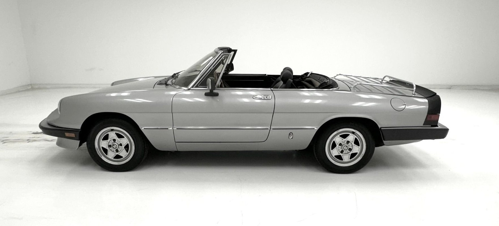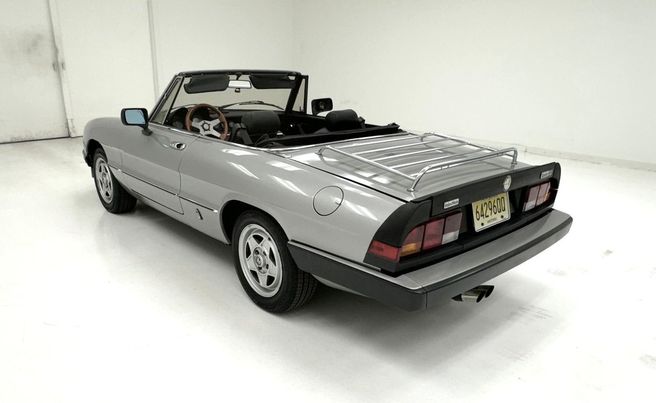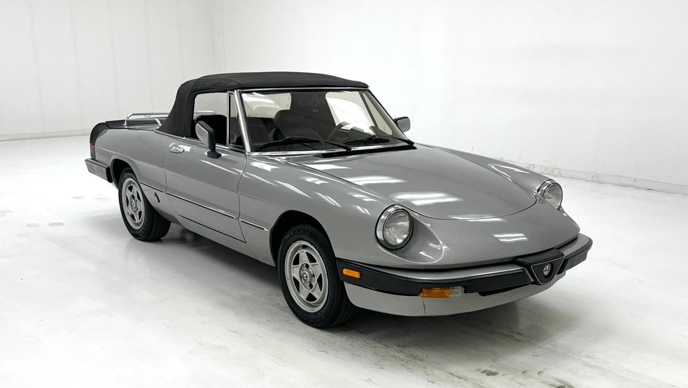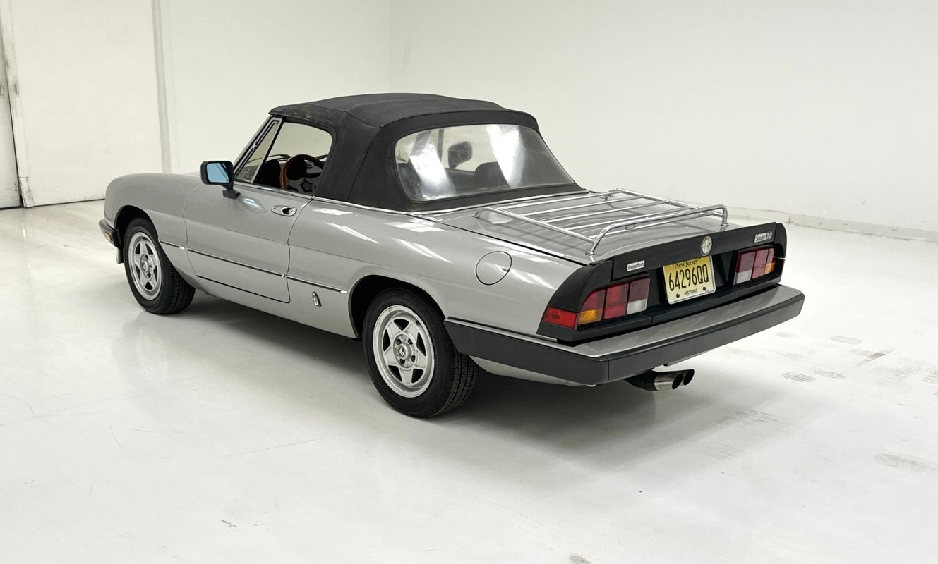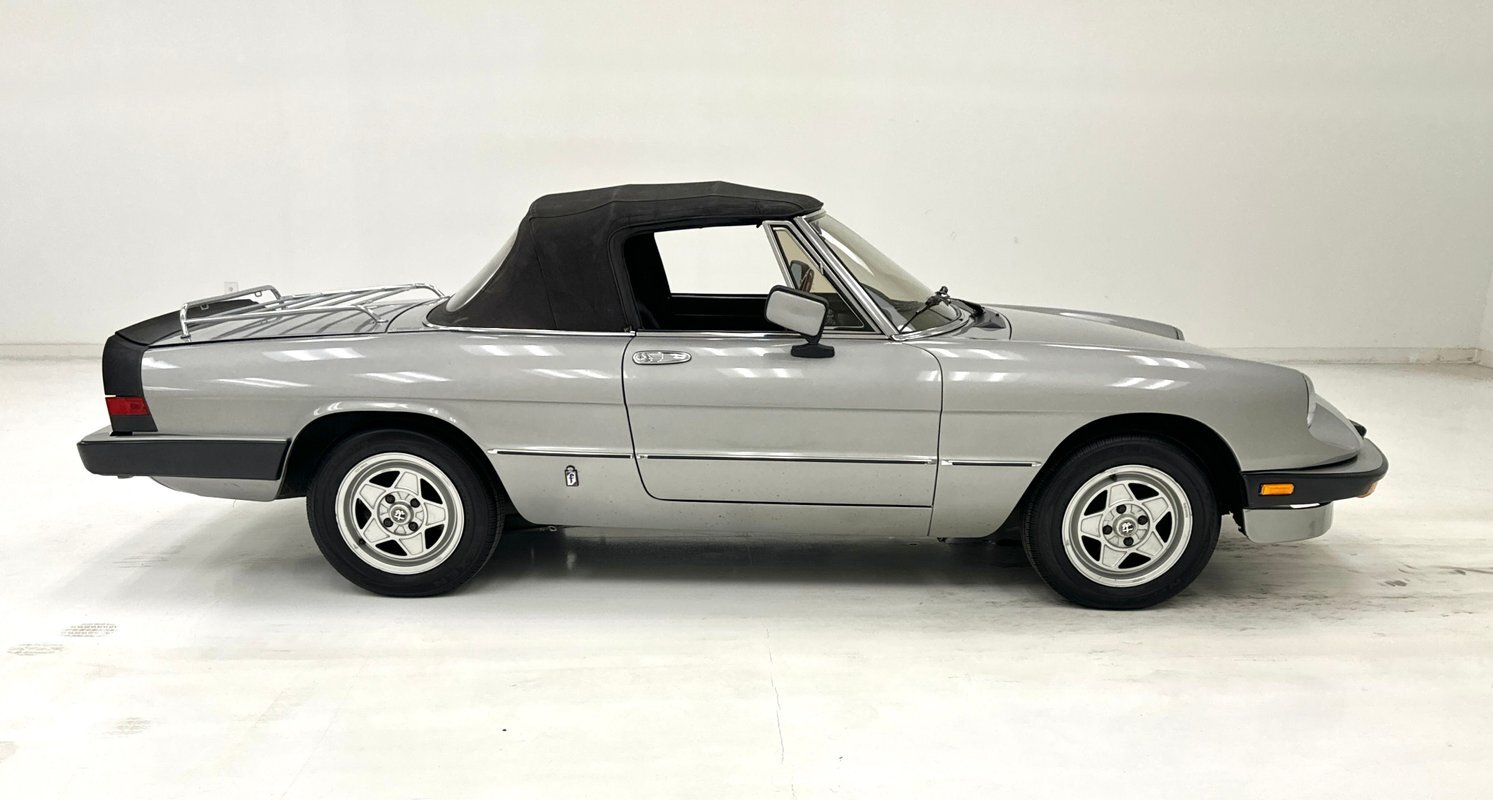 Offered for consignment, an 85,501 non-actual mile 1984 Series 3 Spider in Grigio Chiaro with a great black interior and black canvas top. This beautiful Alfa has had "tasteful and functional" improvements added to enhance the performance and beauty of the original production model which include an updated and rebuilt fuel system with 2 new pumps, a cleaned fuel tank, and new tires. Best of all there is no rust....really!