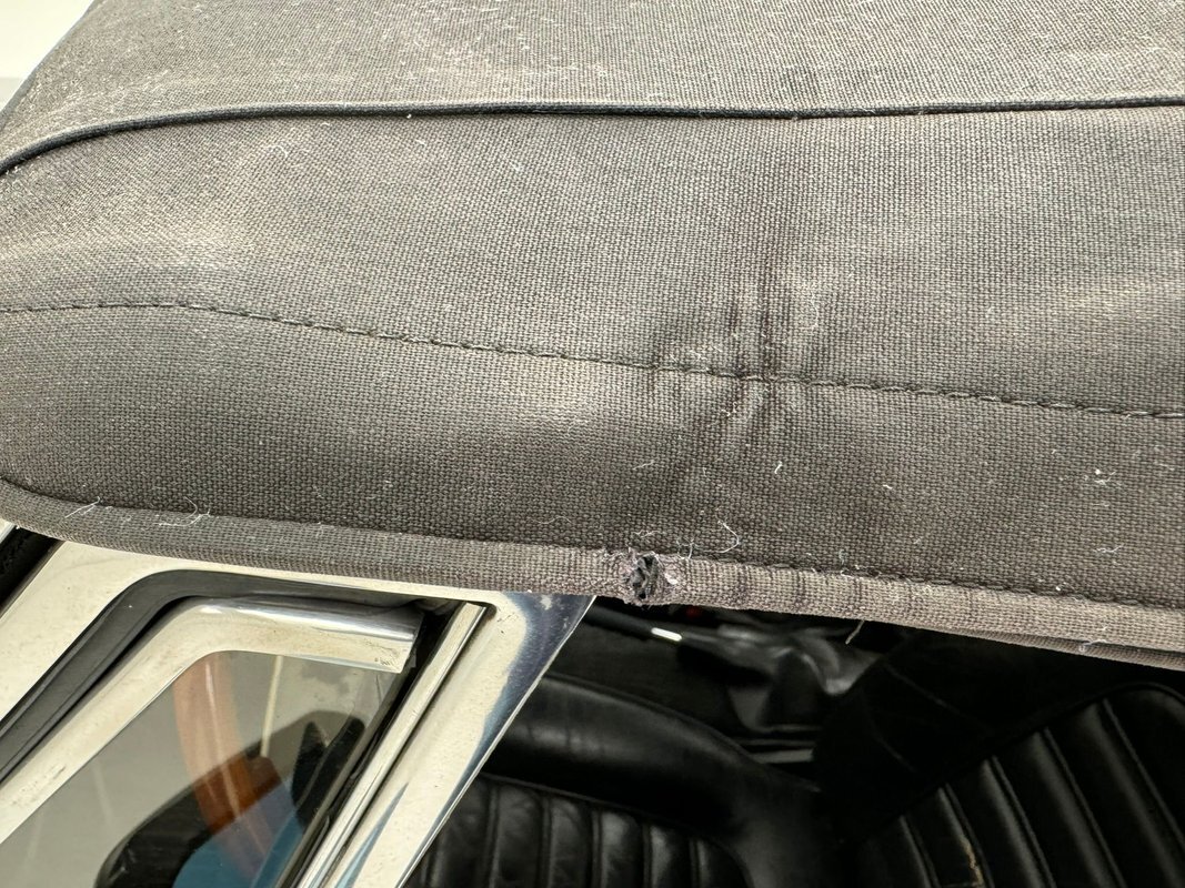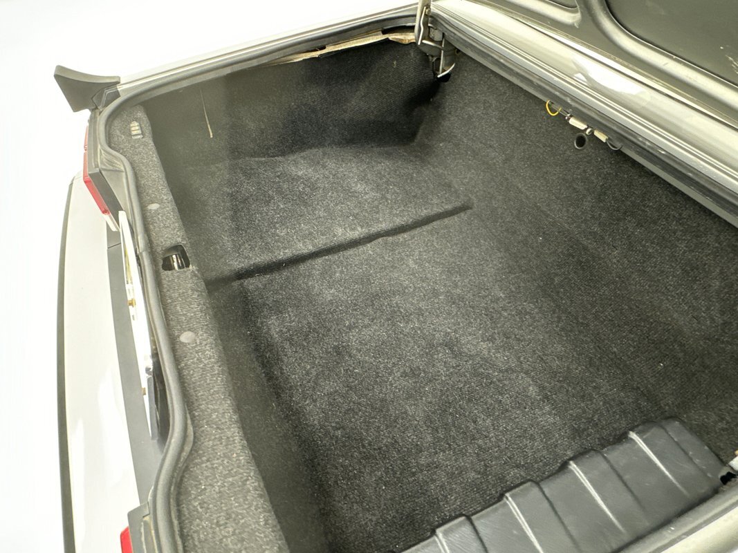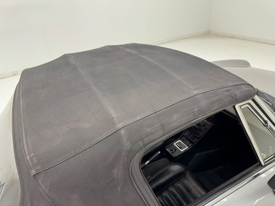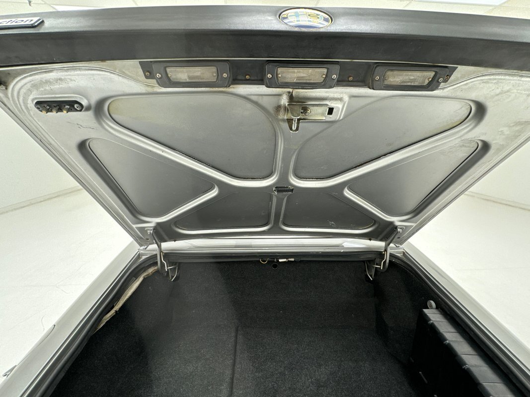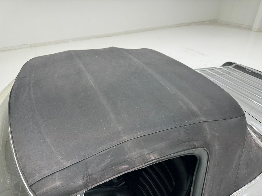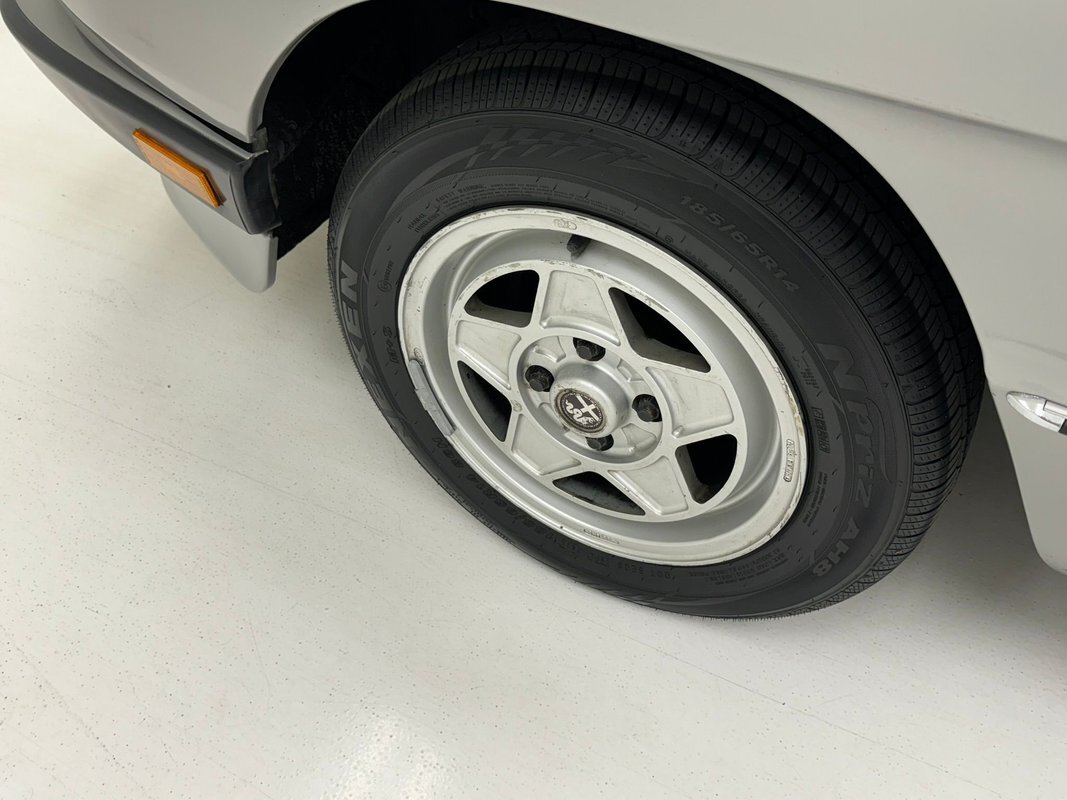 One can tell Pininfarina had their hands in this design. A very thin body, (not tall), long front with exposed headlights, and a small back trunk area. Dressed in Grigio Chiaro, that's platinum silver to the layperson, this Graduate has been stored in a garage environment all its life and it shows. Virtually no rust, blemishes or even fade on the bumpers are seen on this car. As a matter of fact, the only notable flaw in the body is a slight ding in the lower left of the front valance. Minimal badging and brite work is adorning the car, but what is there is near perfect. A black rear of the car with a small matching spoiler can be seen behind the trunk area. Slightly curb rashed and marred 14-inch Alfa Romeo alloy wheels are seen all around and are wrapped by Nexen blackwall radials in 185/65R14 format from the 34th week of 2019. A slightly dusty black convertible top appears covering the passenger compartment and displays with a few small tears along with a very lightly frosted plastic rear window.