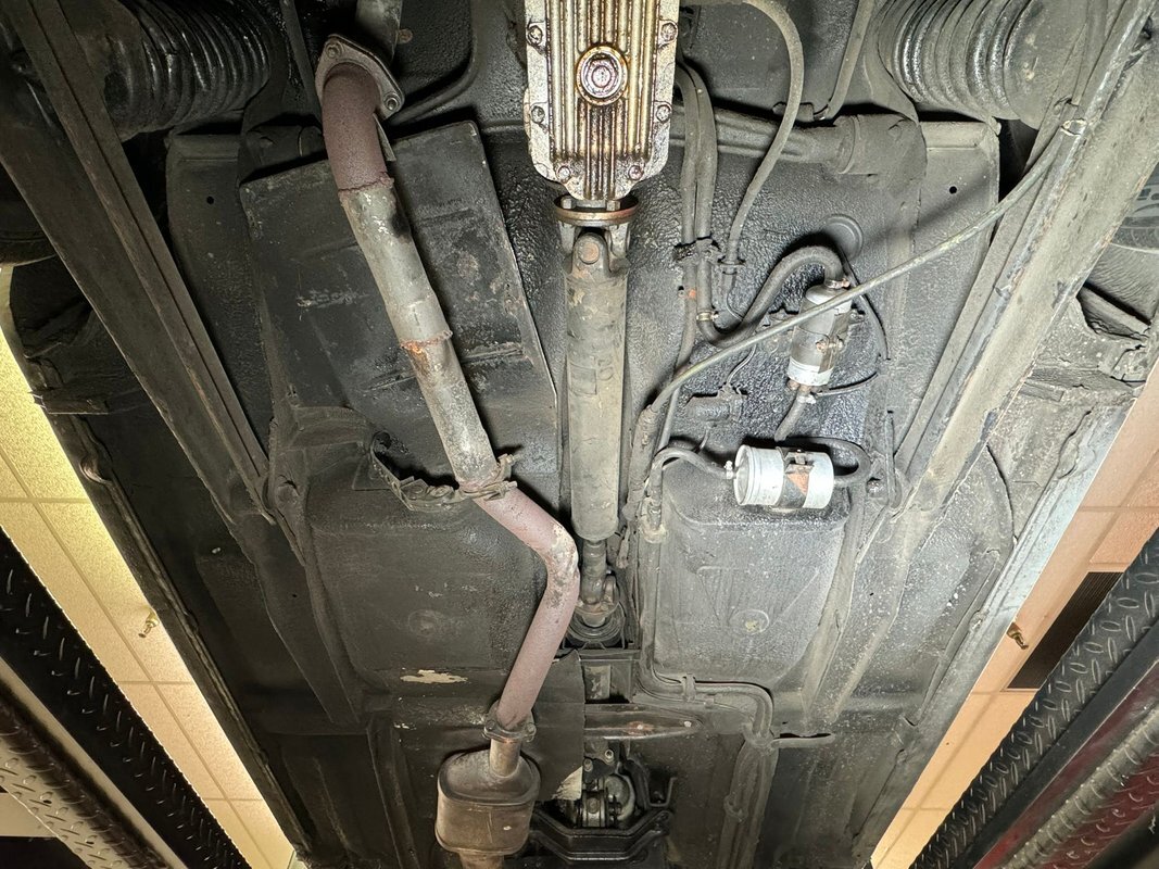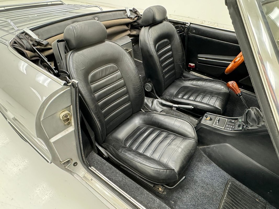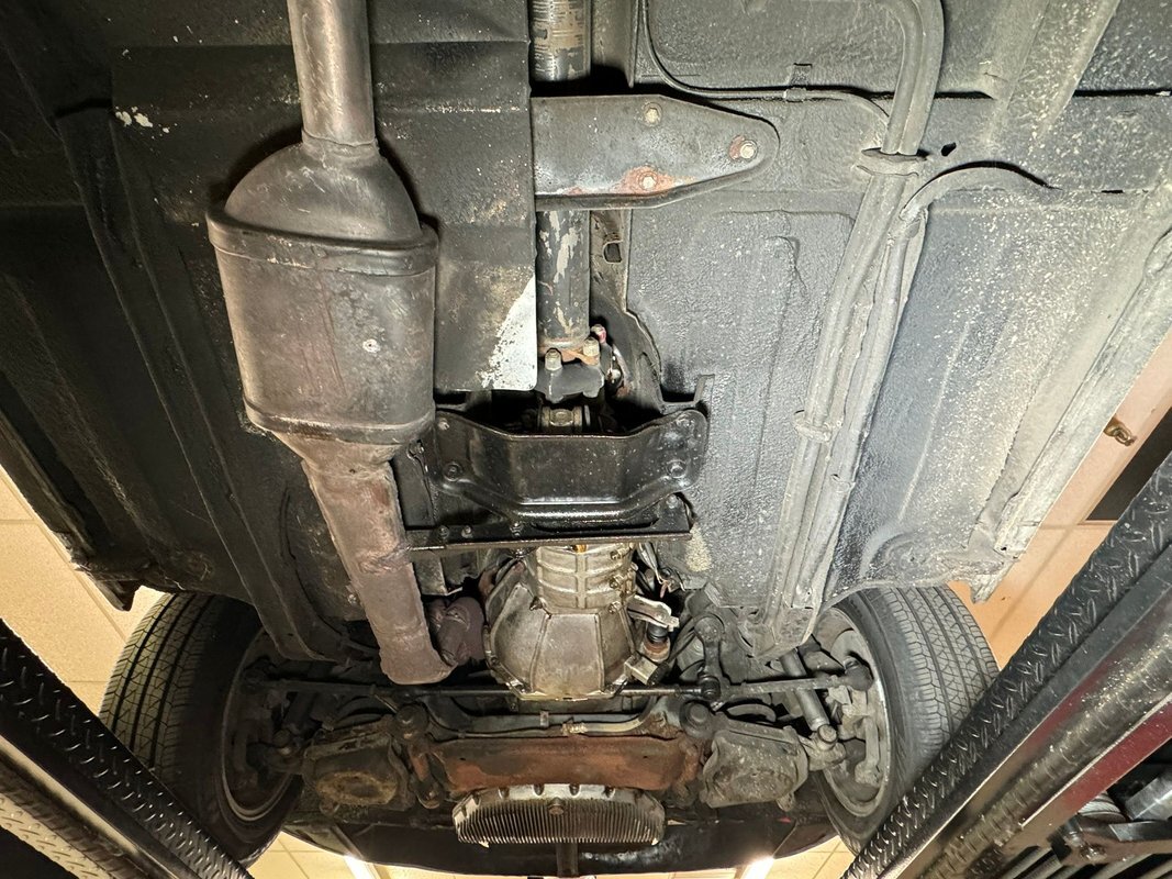Only black patina riddled steel and light surface rust is seen gracing this undercarriage and barely any drip residue is seen on any surfaces. Giving this sports car its ride is independent coil sprung front suspension which works in conjunction with a swing arm and coil spring rear suspension. Power disc brakes are seen all around and we note a new fuel sending unit, hoses, and both fuel pumps have been replaced. A stock replacement style single exhaust is on for the exhale and it's time for some top down fun in the sun.