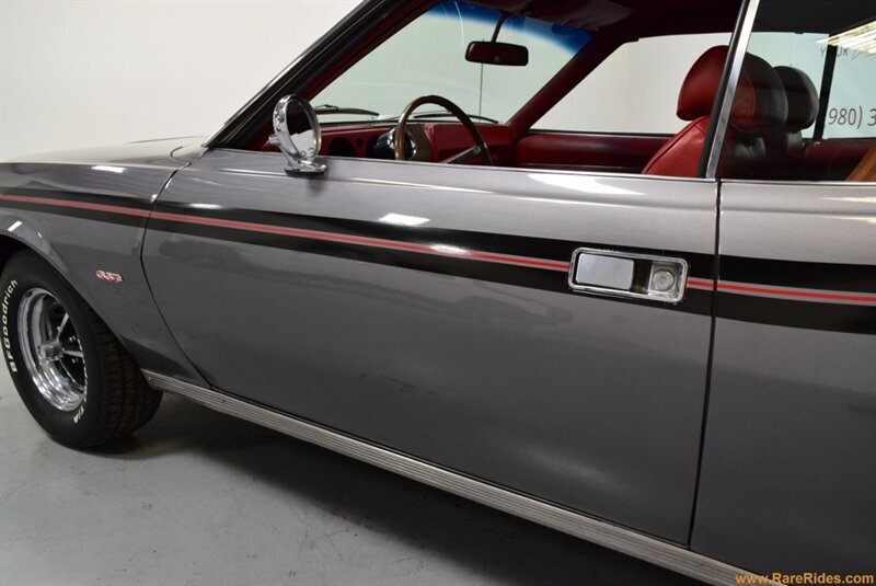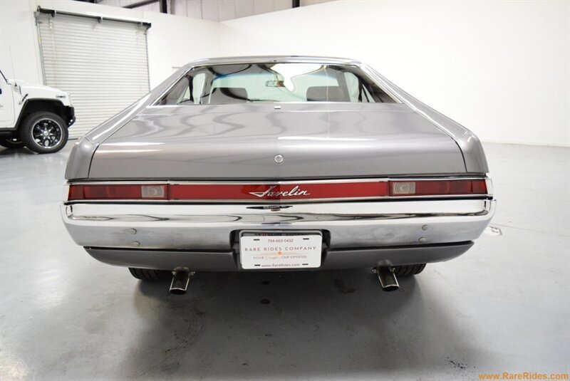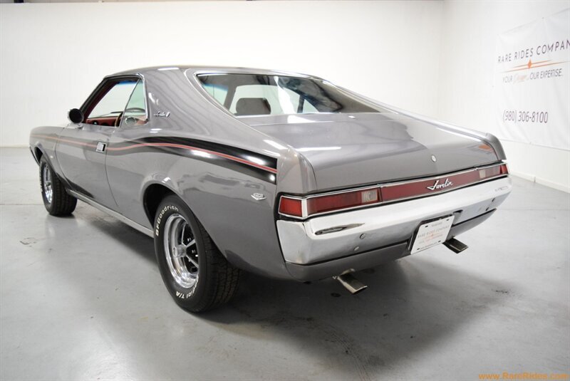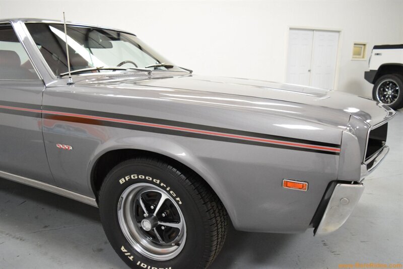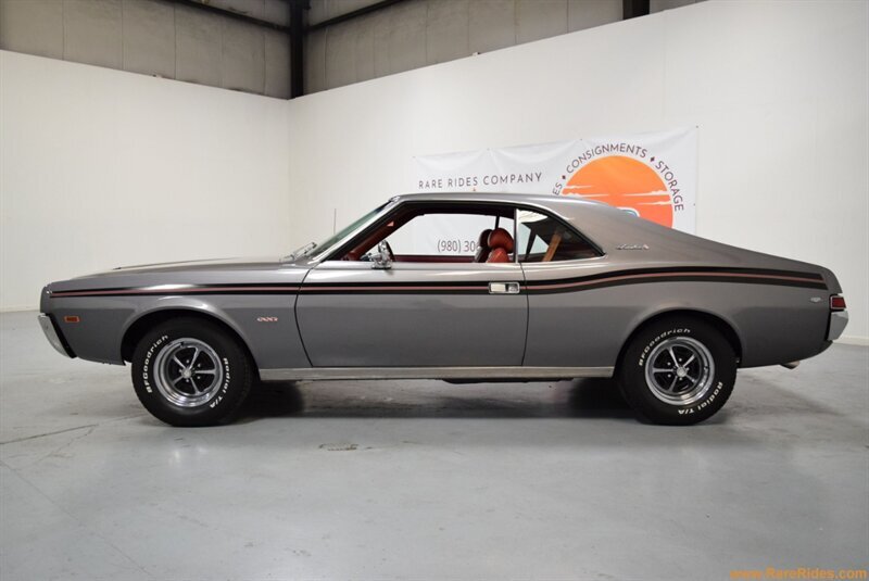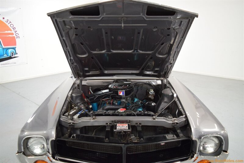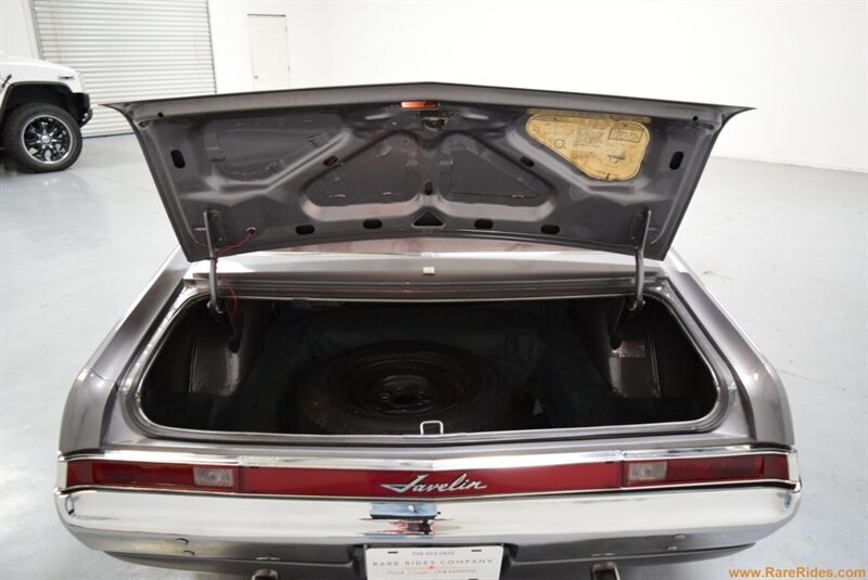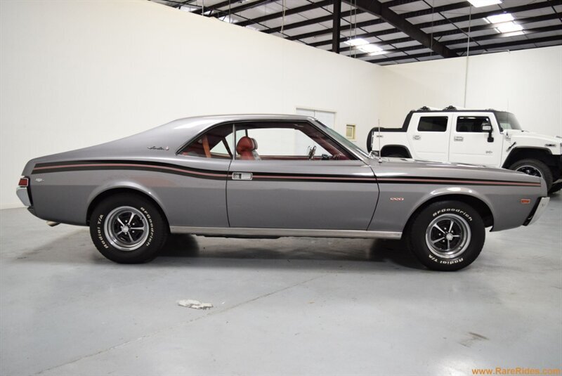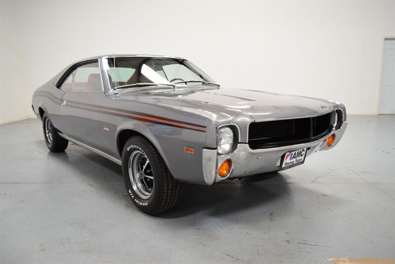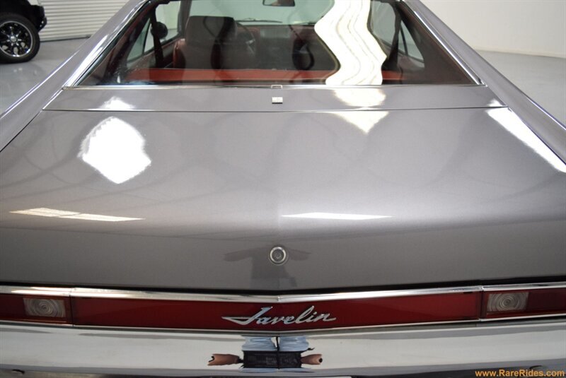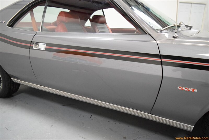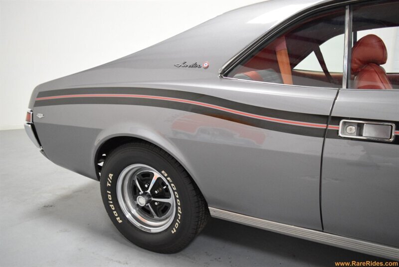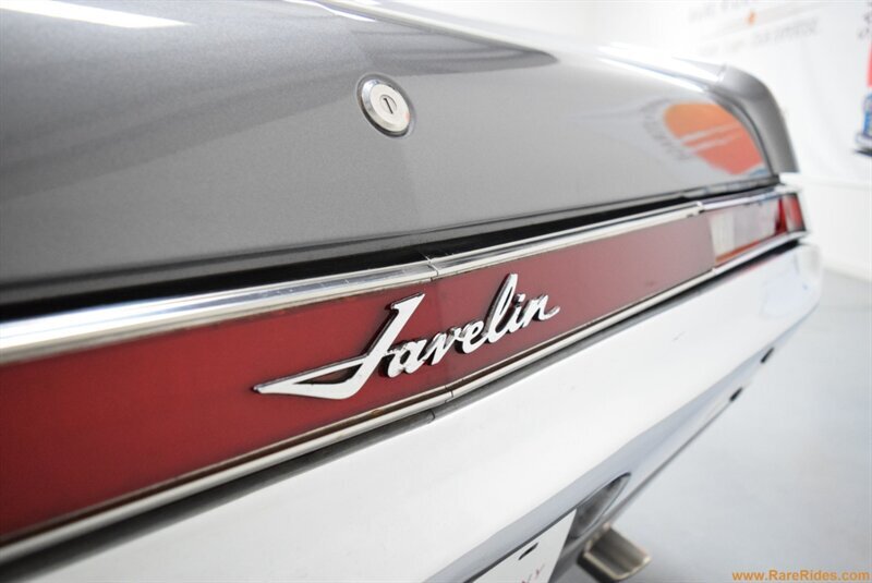 Finished in a striking gray metallic paint, this Javelin SST radiates subdued flashiness on the road. The paint appears to be an older repaint and is in nice condition, highlighting the car's sleek exterior and commanding presence. The red and black side stripes are the cherry on top, and really bring out that Coke bottle curve!