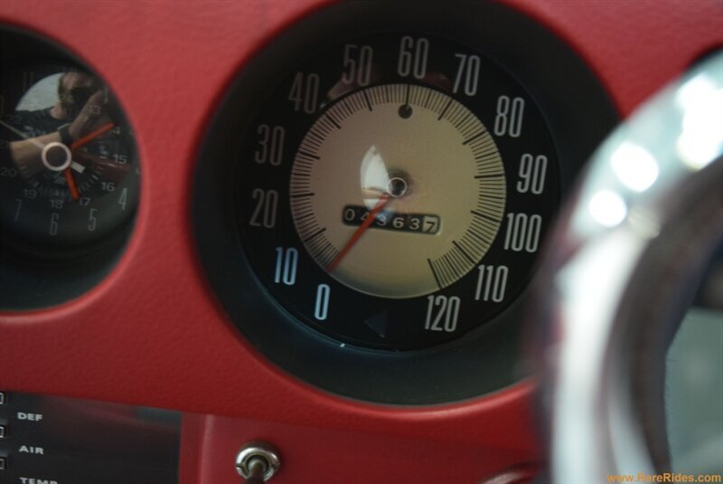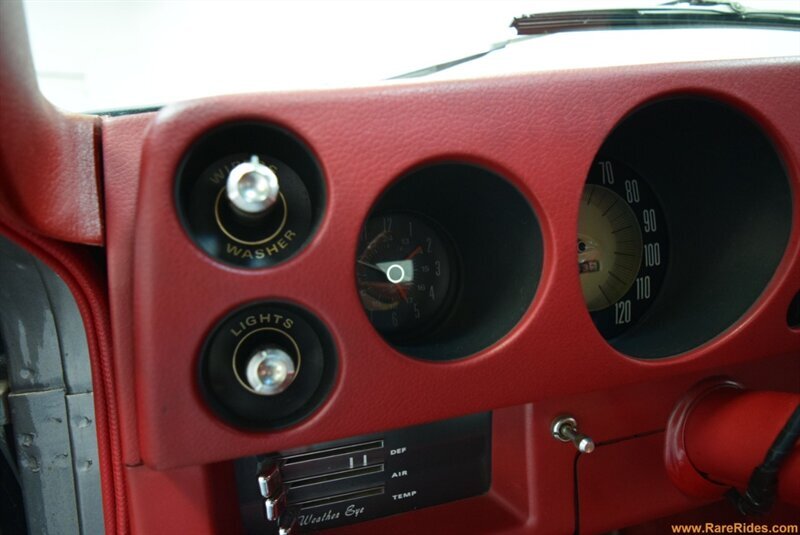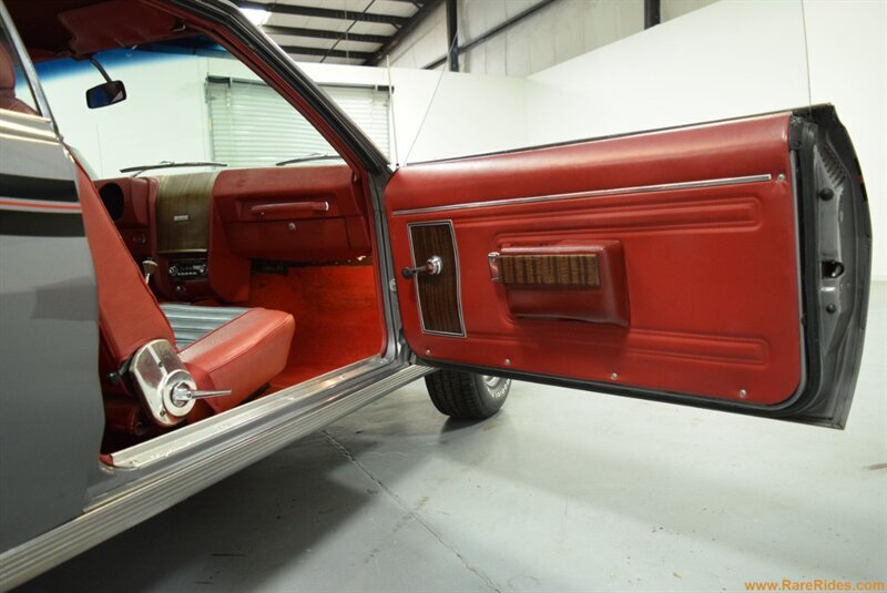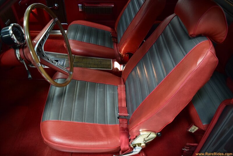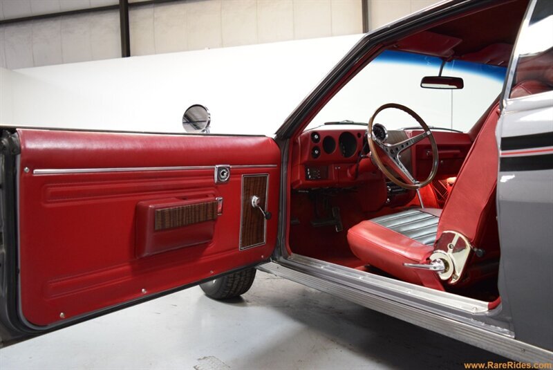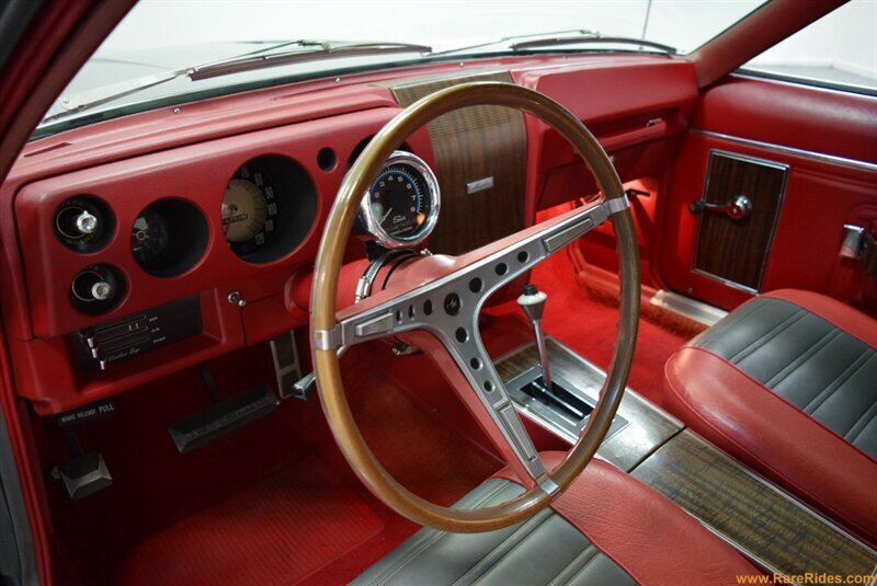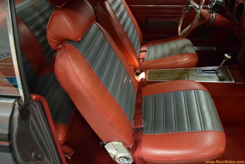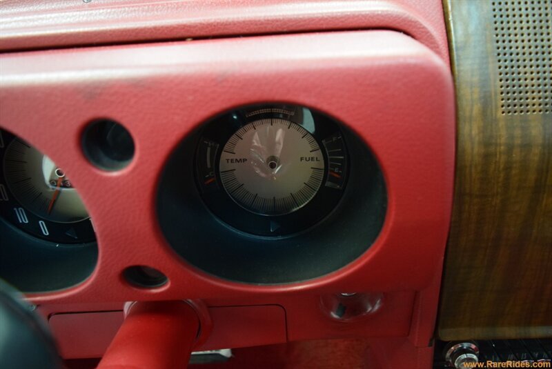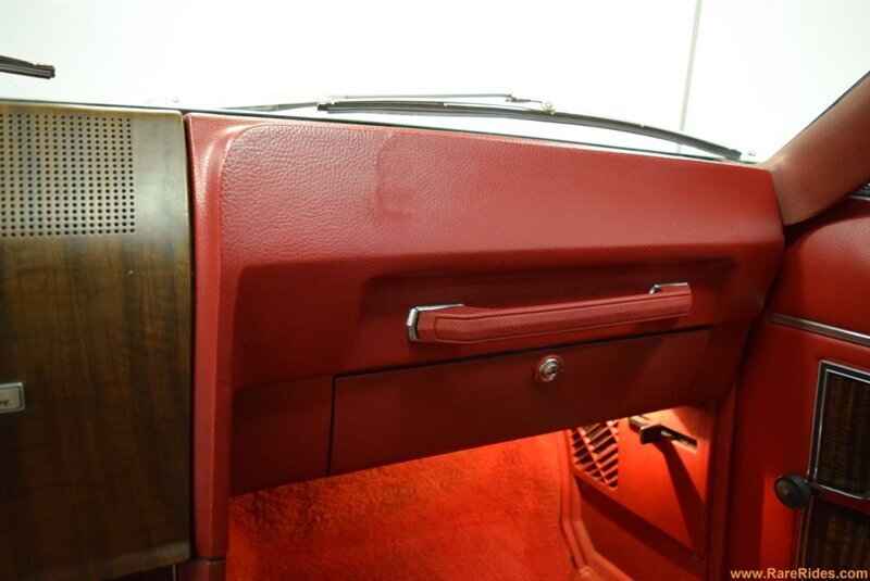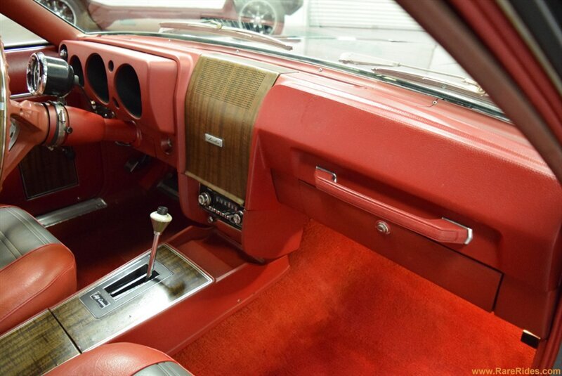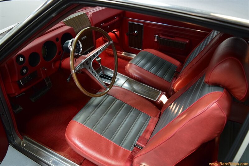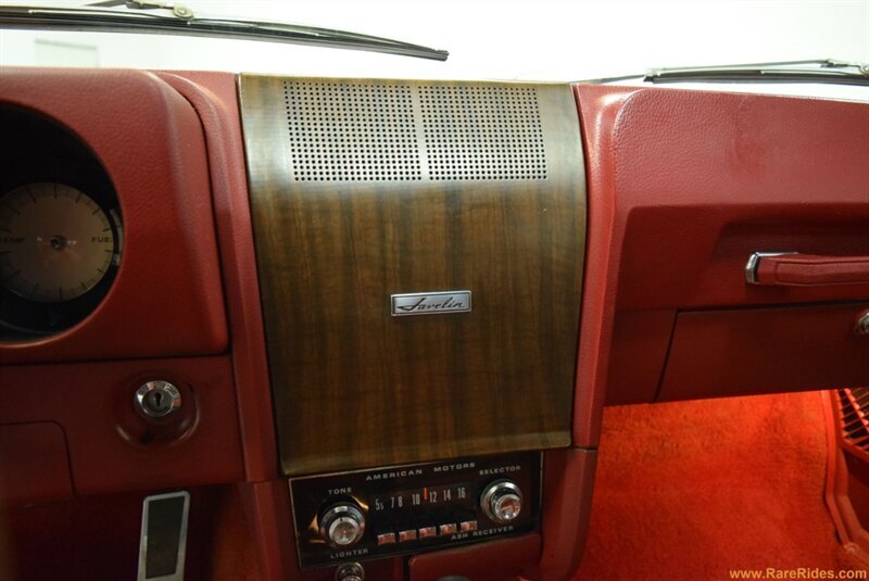 Step inside and experience the epitome of vintage luxury with the tastefully appointed red interior of this Javelin SST. The red seats look fantastic with gray inserts, and the interior appears to be exceptionally well-maintained, possibly even original, dripping in 1960s charm. Woodgrain applique accents and shiny details throughout add to the car's upscale ambiance, cementing this car’s status as a well-dressed muscle car.