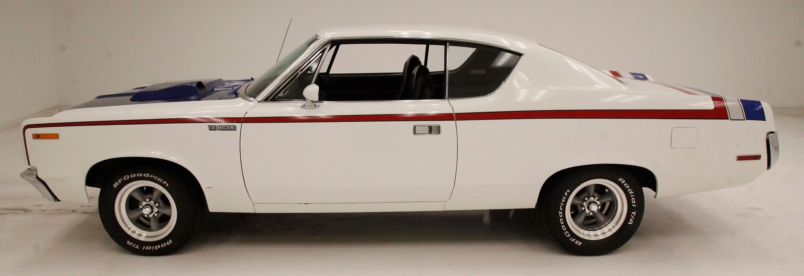 AMC's venture into the muscle car race and aptly called "The Machine". Patriotic colors, muscle look and a stance on these Torque thrust Wheels that look like it's ready to roll. Vintage and a salute to AMC! Imagine it in your driveway.