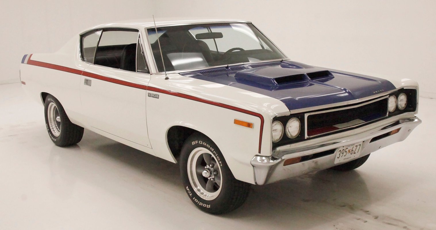 For consignment, a bring back of that loss to history in the form of a 1970 AMC Rebel Machine. This baby is patriotic red white and blue, sports a highest horsepower of ANY AMC with a 390ci V8 and pumping out 340hp. This example is in overall condition, but could be taken to the next level for some real wow factor. It has a rebuilt motor and trans from 2020, sports a dual scooped hood, classic torque thrust wheels and a nicely loud Flowmaster exhaust system. Our consignor states that it is not perfect, but has little to go to make it a really great car, isn't it time you delved into the 1 of 2,326 built AMC world?